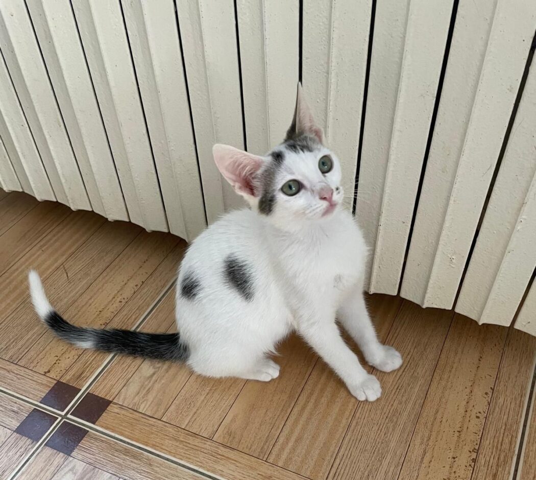 Finja is een poes met een geschatte geboortedatum van 30 april 2025 en ze wordt ongeveer 24 cm hoog. (10/25)