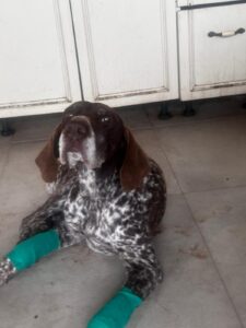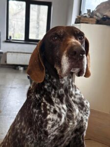 Finn is een gecastreerde pointer mixreu met een geschatte geboortedatum van 15 mei 2021 en is ongeveer 50 cm groot. (11-25)