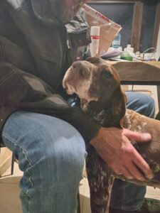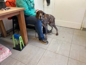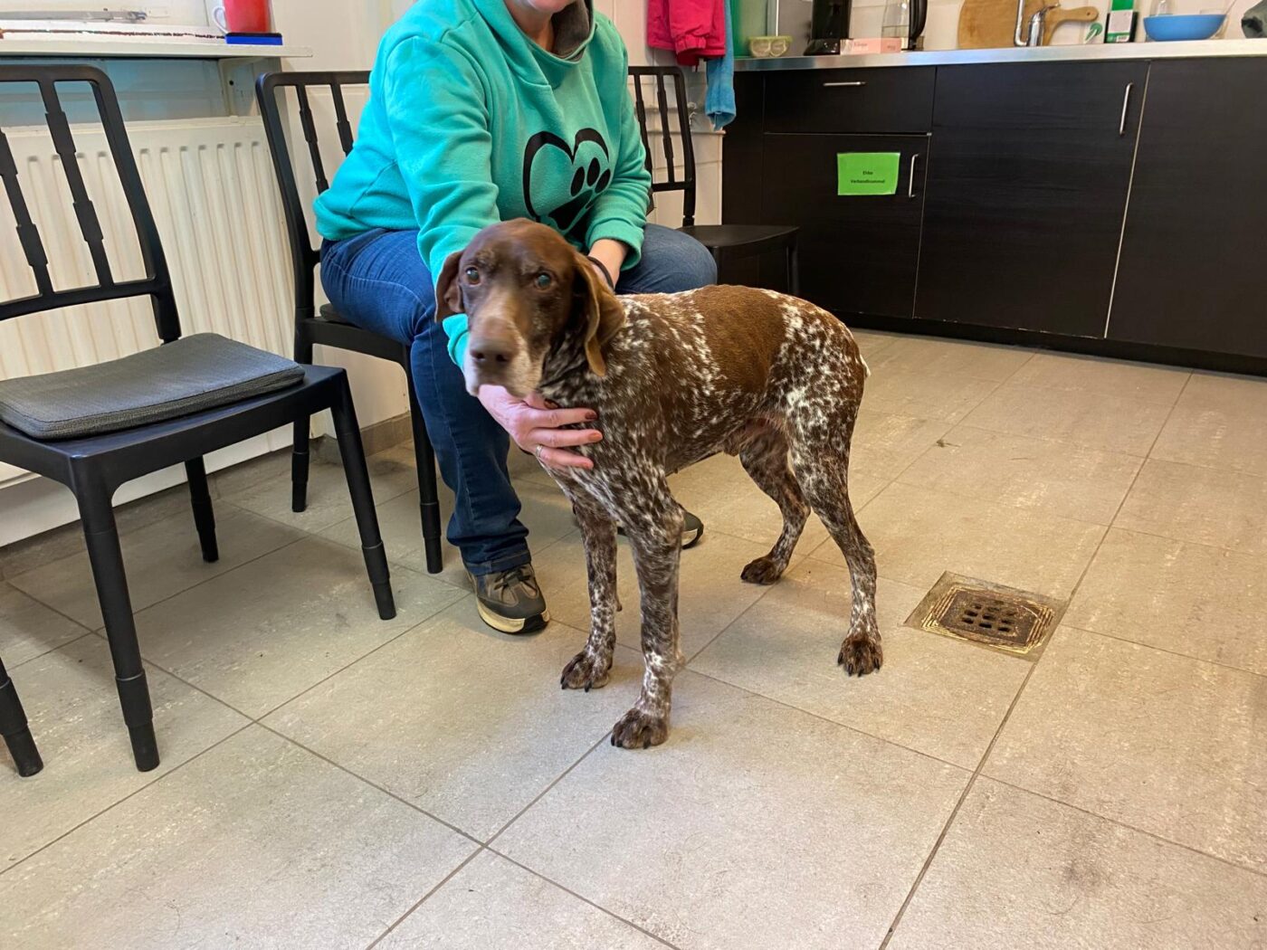 Finn is een gecastreerde pointer mix reu met een geschatte geboortedatum van 15 mei 2021 en is ongeveer 50 cm groot.
