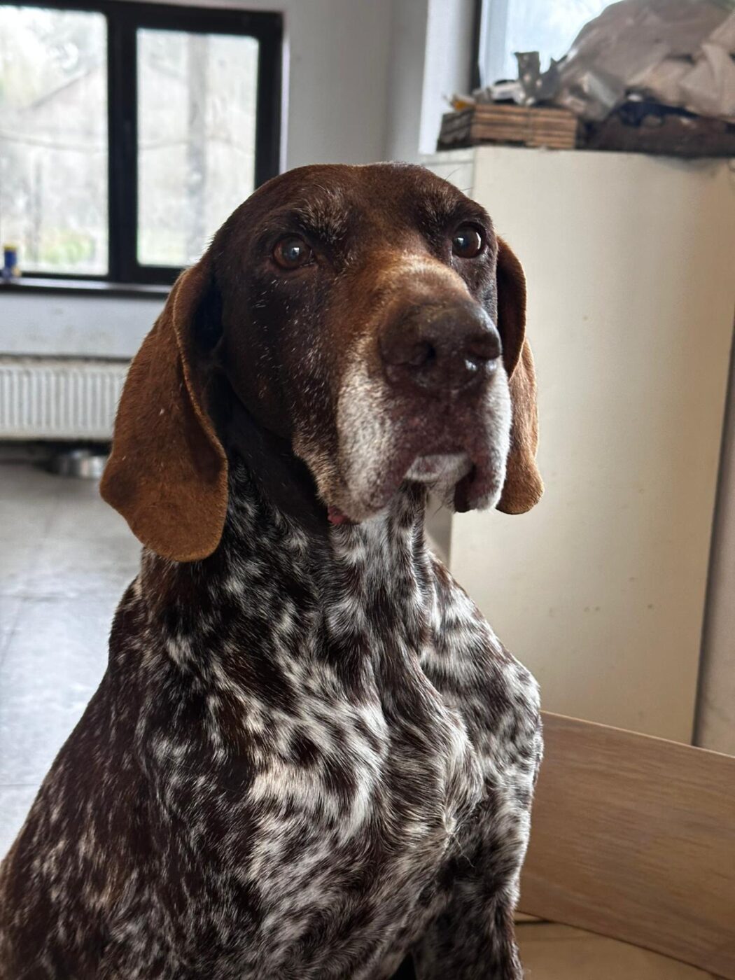 Finn is een gecastreerde pointer mixreu met een geschatte geboortedatum van 15 mei 2021 en is ongeveer 50 cm groot. (11-25)