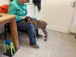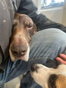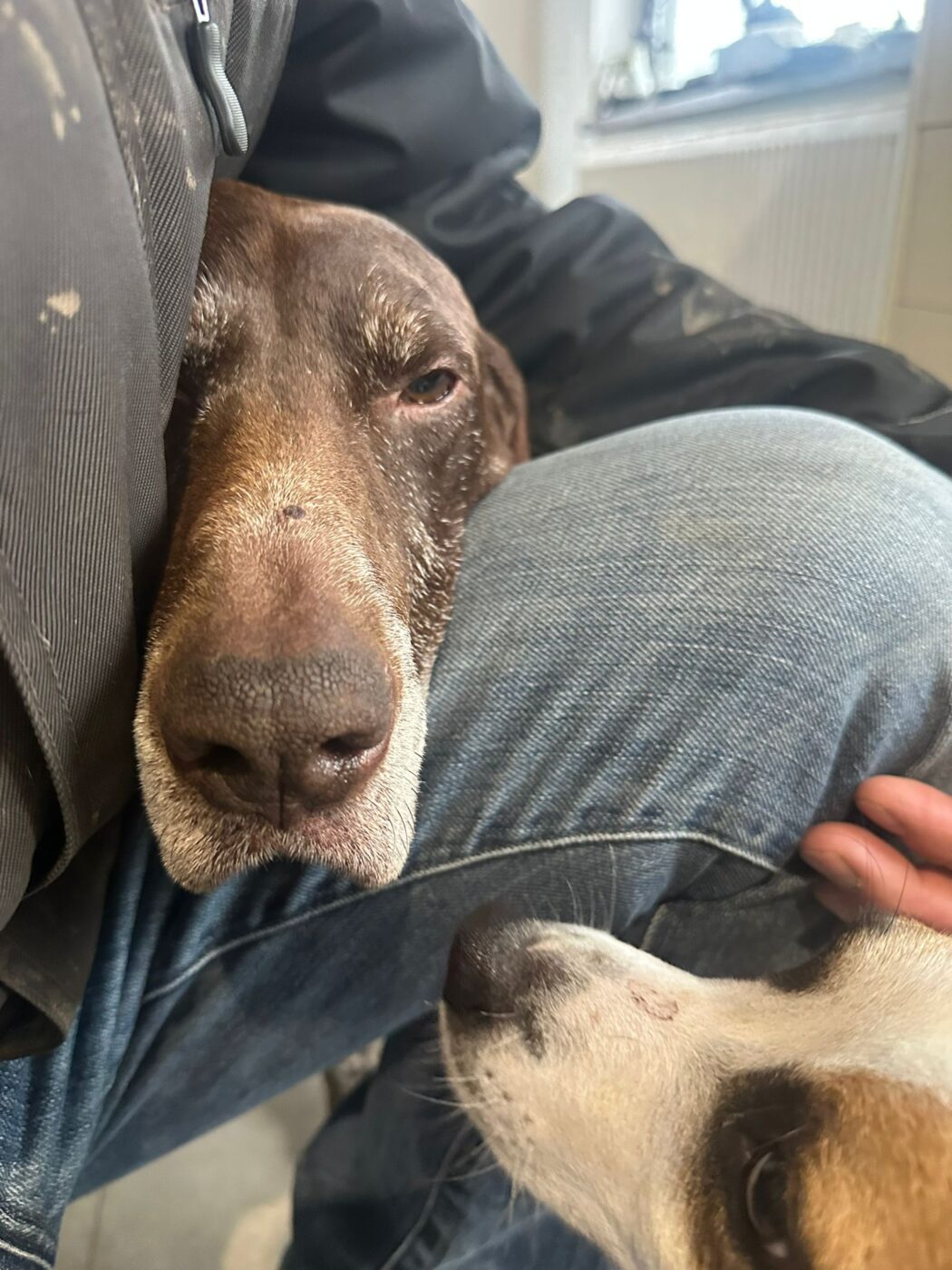 Sinds zijn herstel verbleef hij in de vrijwilligerswoning van onze partner aldaar, samen met meerdere andere honden. Daar liet hij al zien wat voor bijzondere hond hij is: sociaal, zachtaardig en vriendelijk tegen iedereen. Finn kan uitstekend overweg met andere honden, maar het liefst zoekt hij de nabijheid van mensen. Hij kruipt graag dicht tegen je aan en legt zijn kop rustig op je schoot om wat aandacht te krijgen.