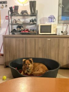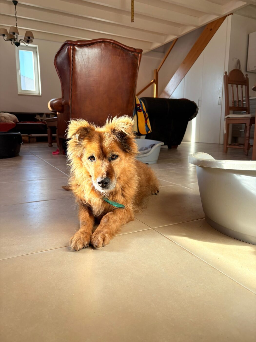 Afgelopen week verbleef Fozzy opnieuw in een vrijwilligerswoning, en daar liet hij nóg meer van zijn ware karakter zien. Hij voelde zich direct thuis, liep vrij rond, bleef graag in de buurt en vond het gezellig om overal bij te zijn, tijdens het koken, eten en zelfs als iemand de trap opging. Stairs? Geen enkel probleem voor hem. ’s Avonds keek hij rustig toe of kroop in zijn mandje om te ontspannen. Hij gaf keurig aan wanneer hij naar buiten moest en was de hele tijd vriendelijk en ontspannen.