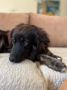 Tegenover onbekende mensen wordt Ginny langzaam maar zeker opener. Waar ze eerst afstand hield, kwam ze na wat tijd en positieve ervaringen steeds dichterbij. Andere honden laat ze gewoon met rust, zonder stress of opwinding. Tijdens een pauze op een bank keek ze rustig rond en ging daarna ontspannen liggen.