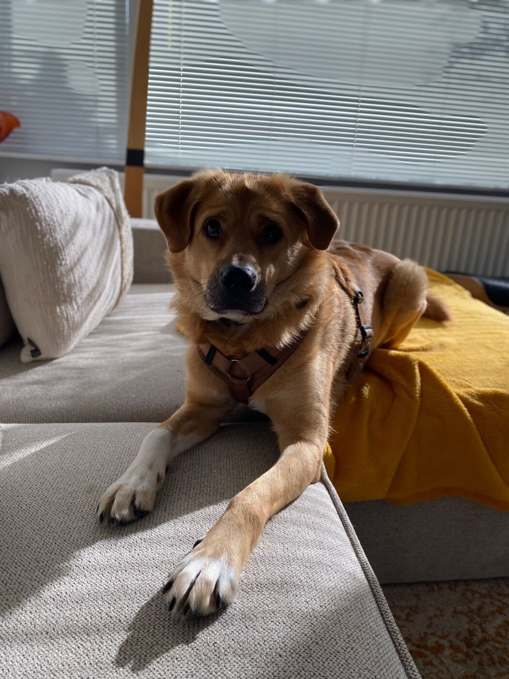 Thuis is Guus een heerlijke, rustige metgezel. Hij ligt graag aan je voeten of tegen je aan op de bank, op zijn eigen kleed. Hij zoekt graag nabijheid, maar is nooit opdringerig. Alleen zijn vindt hij geen probleem; hij weet zijn rust te pakken en geniet dan van zijn eigen plekje. En zodra de zon doorkomt, is Guus in zijn element, je vindt hem dan languit in elk zonnestraaltje dat hij kan vinden, zalig genietend van de warmte.