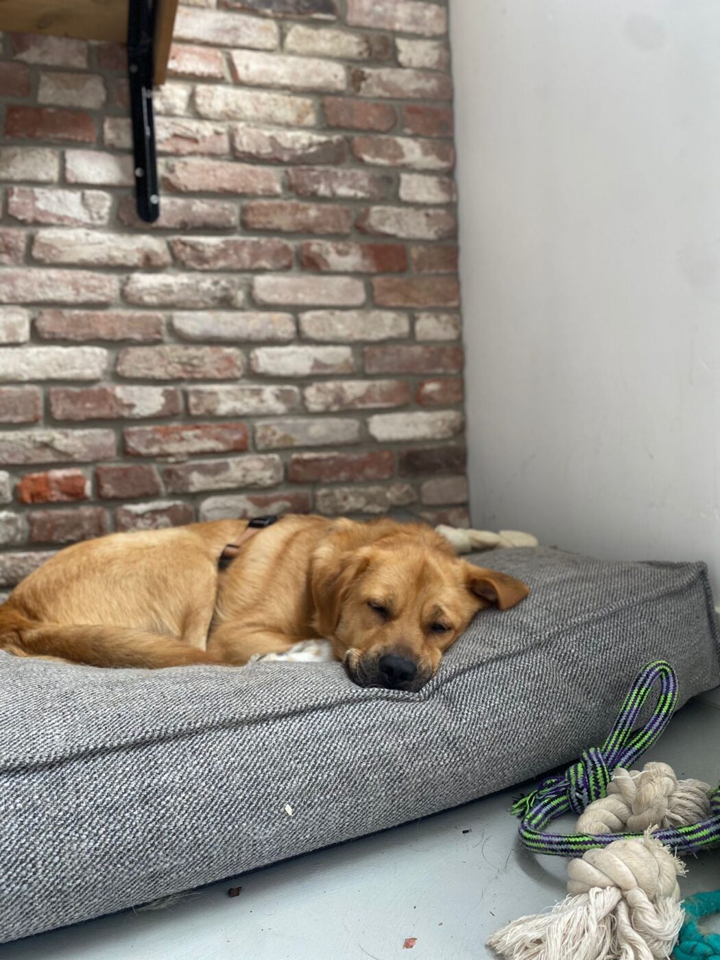 Guus is een ontzettend lieve trouwe en zachtaardige hond. Hij is slim, gevoelig en geniet van alles wat met snuffelen, speuren en ontdekken te maken heeft. Zijn neus is zijn trots – geen snoepje blijft voor hem verborgen. Denkopdrachten vindt hij geweldig; als hij mag puzzelen en beloond wordt voor zijn inzet, straalt hij van trots.