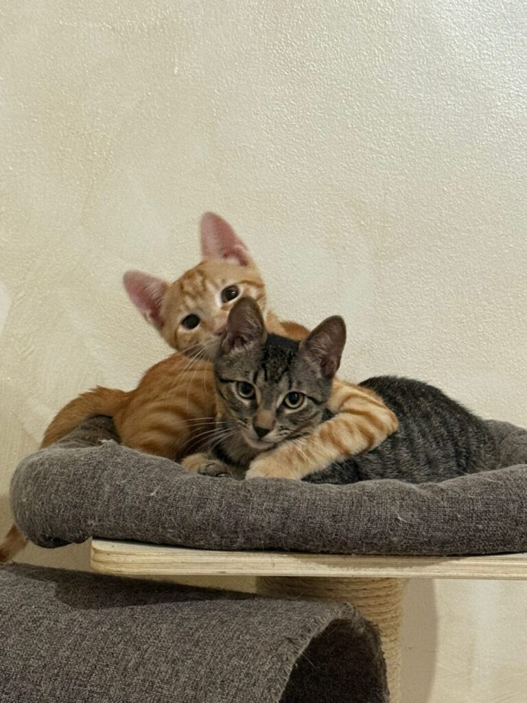 Beide katertjes zijn sociaal, lief en dol op aandacht. Ze houden van spelen, rennen en knuffelen, en zouden perfect passen in een warm gezin dat hen samen een gouden mandje wil geven. Omdat ze zo’n hechte band hebben zou het heel leuk zijn als ze samen geadopteerd worden.