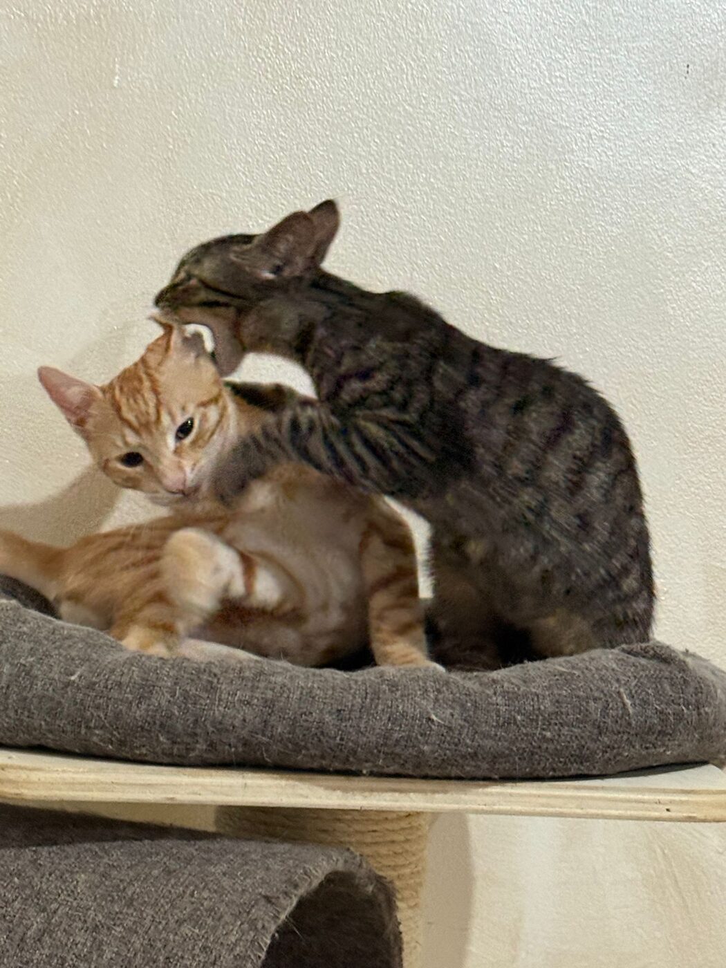 Beide katertjes zijn sociaal, lief en dol op aandacht. Ze houden van spelen, rennen en knuffelen, en zouden perfect passen in een warm gezin dat hen samen een gouden mandje wil geven. Omdat ze zo’n hechte band hebben zou het heel leuk zijn als ze samen geadopteerd worden.