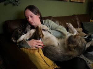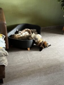 Eenmaal op zijn gemak is Henry een echte knuffelkont. Hij houdt van spelen, ravotten en knuffelen met de mensen die hij vertrouwt. Daarna ligt hij graag languit in zijn mand — vaak half eruit, met zijn lange lijf in de meest komische houdingen. Bekende wandelroutes vindt hij heerlijk; in onbekende omgevingen blijft hij liever dicht bij zijn begeleider, omdat nieuwe prikkels hem soms onzeker maken.