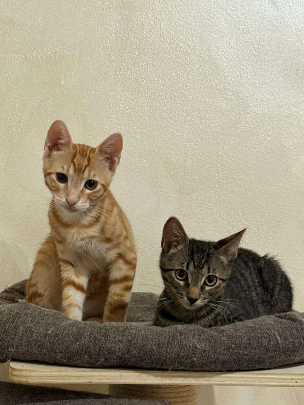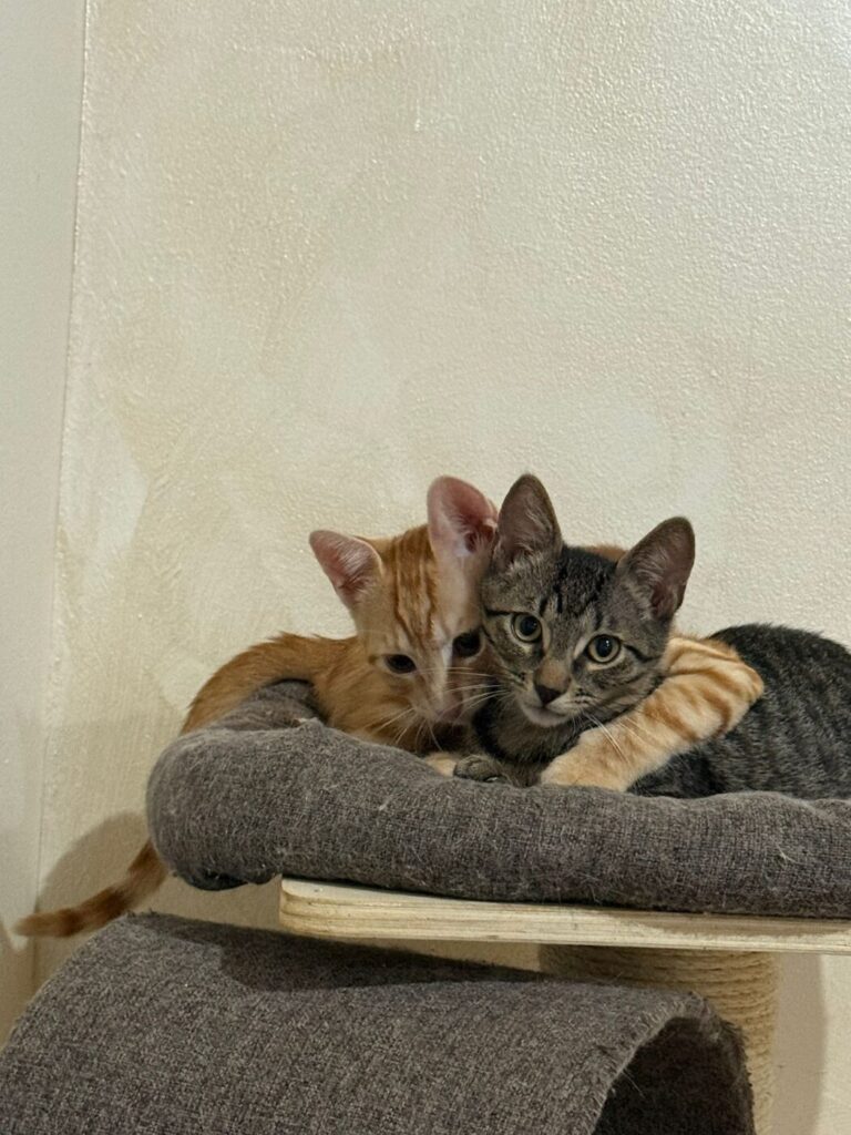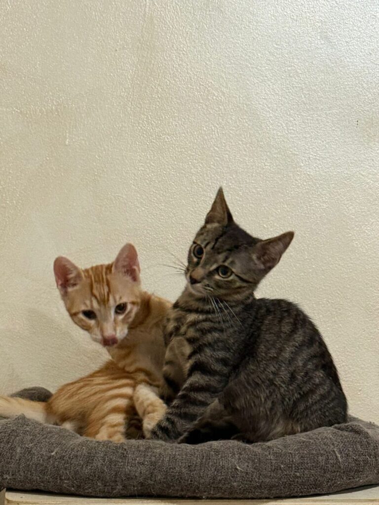 Beide katertjes zijn sociaal, lief en dol op aandacht. Ze houden van spelen, rennen en knuffelen, en zouden perfect passen in een warm gezin dat hen samen een gouden mandje wil geven. Omdat ze zo’n hechte band hebben zou het heel leuk zijn als ze samen geadopteerd worden.