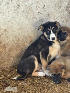 Toen de vrijwilligers aankwamen, zagen ze hoe de moeder haar uiterste best had gedaan om haar kleintjes te beschermen. Ze had ze onder een struik verstopt en lag zelf bovenop hen om ze warm en veilig te houden. Maar het was geen plek waar een moederhond met pups kon overleven. Ze hebben het hele gezinnetje daarom meegenomen naar de rescueopvang in Roemenië, waar ze eindelijk veilig waren.