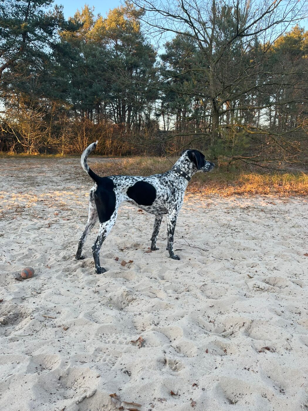 Kaya is een prachtige, bijna vijf jaar oude dame die oorspronkelijk uit Griekenland komt. De eerste maanden van haar leven bracht ze door op het eiland Lesbos in een pleeggezin met jonge kinderen, voordat ze naar Nederland kwam. Sindsdien is ze bij haar huidige gezin uitgegroeid tot een trouwe en gevoelige hond met een duidelijke eigen wil. Ze geniet enorm van snuffelwandelingen, want ze heeft duidelijk jachthondgenen. Aan de lijn wandelen vindt ze soms lastig, maar zodra ze los mag lopen komt haar gehoorzaamheid prachtig naar voren: ze wacht keurig bij kruispunten in het bos en houdt haar baasje goed in de gaten. In de tuin of los in de natuur voelt ze zich het meest op haar gemak.