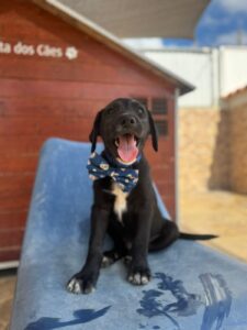 Lorenzo’s leventje begon niet op de plek waar een pup hoort te zijn. Het kleine ventje zat in een Portugees staatsasiel — een grauwe, kille omgeving waar geen enkele hond thuishoort, laat staan een jonge pup vol leven. Gelukkig werd hij opgemerkt door onze partnerrescue in Portugal en mocht hij die benauwde plek verlaten. Sindsdien bloeit Lorenzo op.