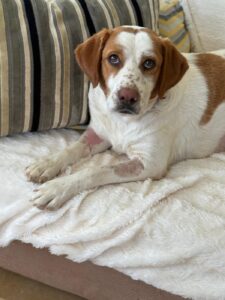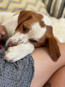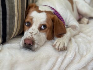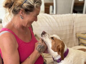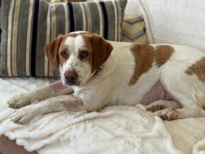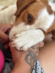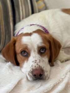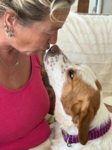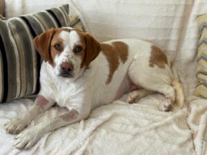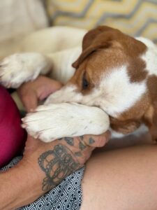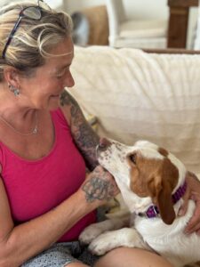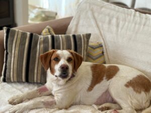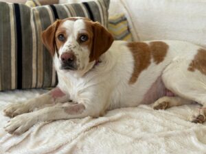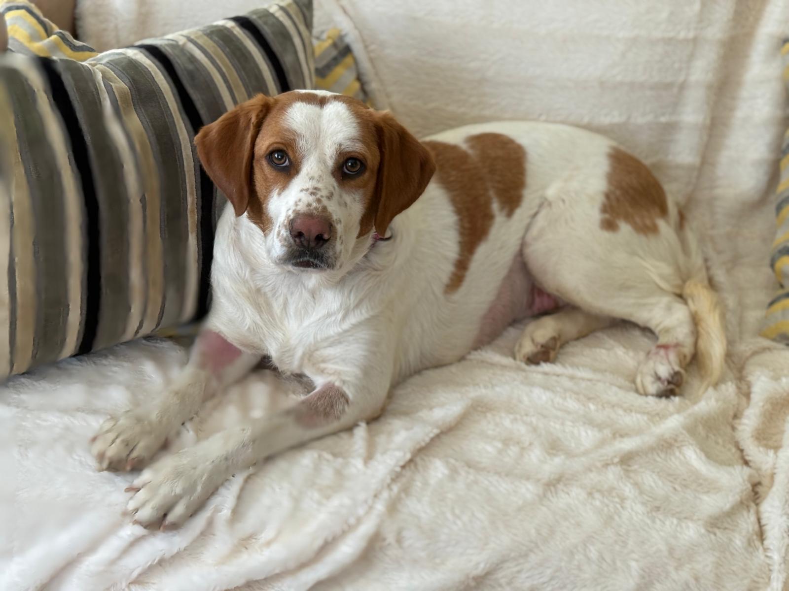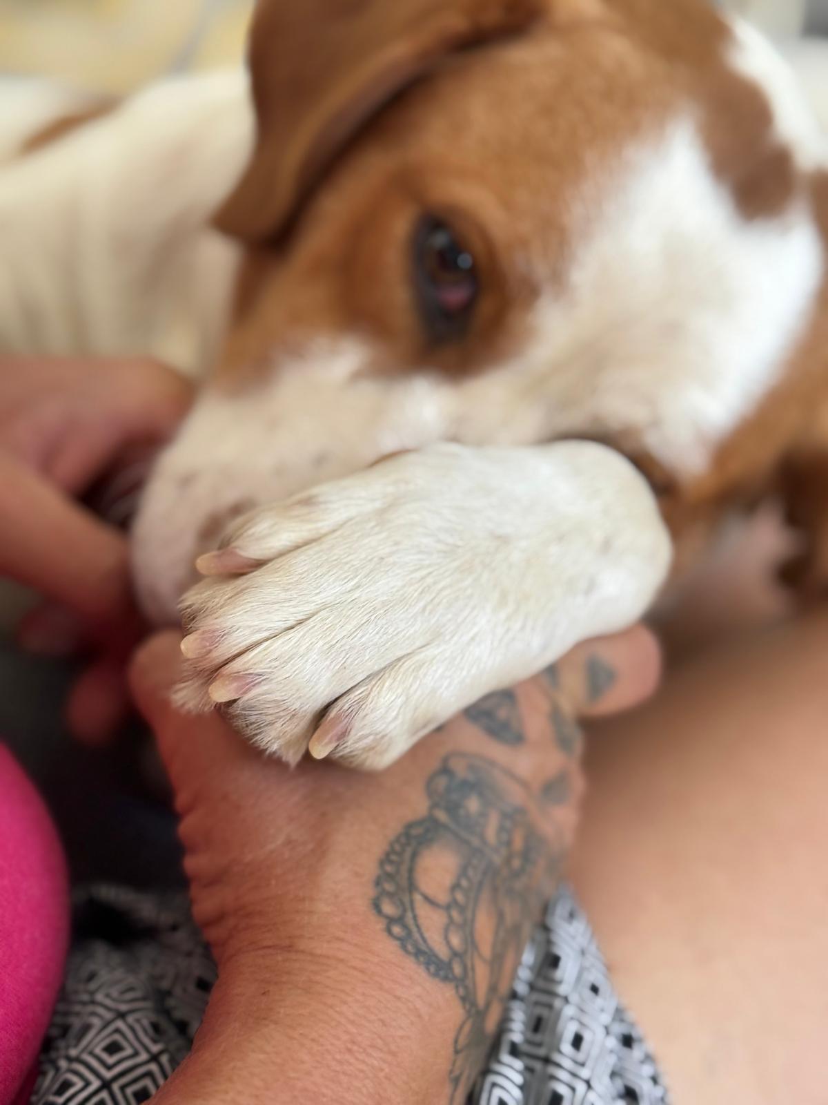 Maica is een ontzettend lieve en gezellige dame. Ze is aanhankelijk en sterk gericht op mensen, en vanaf het moment dat ze uit de kennel werd gehaald, is ze niet meer gestopt met kwispelen. Ze kwispelt zo hard dat haar hele achterste mee wiebelt – echt een vrolijk gezicht.