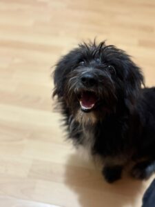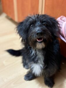 Een klein, lief, zwart bolletje wol – dat is Mango. Hij werd gevonden aan de rand van een klein stadje in Roemenië, waar hij in paniek tussen de auto’s liep. Het scheelde weinig of hij was aangereden. Uiteindelijk zocht hij zijn toevlucht bij een benzinepomp, in de hoop dat iemand hem wat eten zou geven.