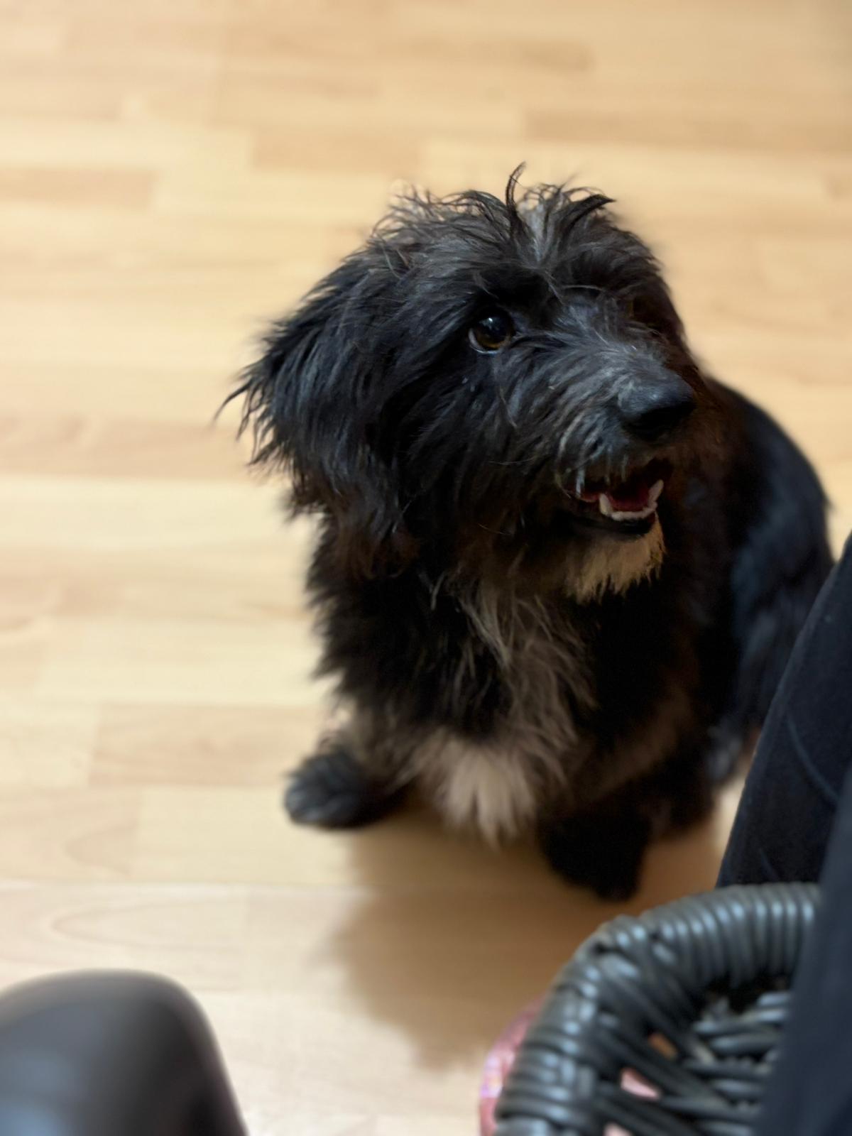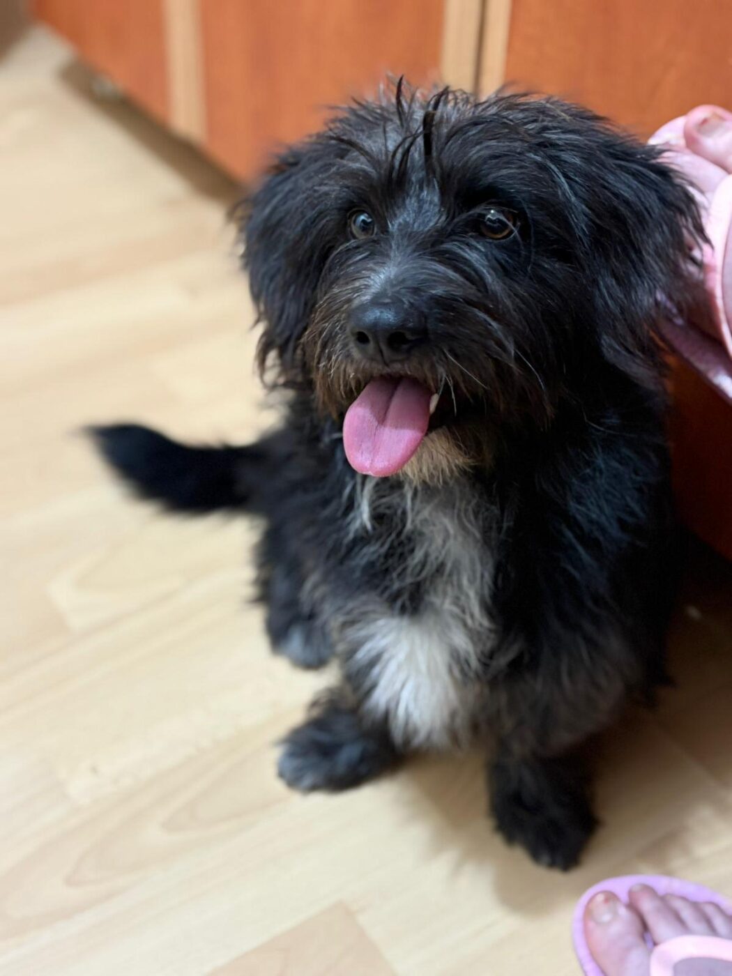 Een klein, lief, zwart bolletje wol – dat is Mango. Hij werd gevonden aan de rand van een klein stadje in Roemenië, waar hij in paniek tussen de auto’s liep. Het scheelde weinig of hij was aangereden. Uiteindelijk zocht hij zijn toevlucht bij een benzinepomp, in de hoop dat iemand hem wat eten zou geven.
