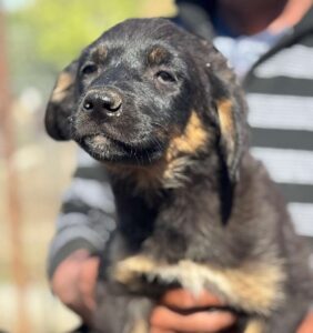 Dit meisje met een prachtige black-and-tan vacht is Mara. Samen met haar acht broertjes en zusjes werd ze op een dag achtergelaten, zonder uitleg en zonder reden, simpelweg omdat ze niet meer gewenst werden. Niemand weet precies wat hen is overkomen voor ze in de opvang terechtkwamen, en dat verleden blijft voor nu een raadsel. Wat we wel weten, is dat ze nu veilig zijn, maar dat een drukke kennelomgeving niet de plek is waar zulke jonge, kwetsbare hondjes hun ware potentieel kunnen ontplooien.