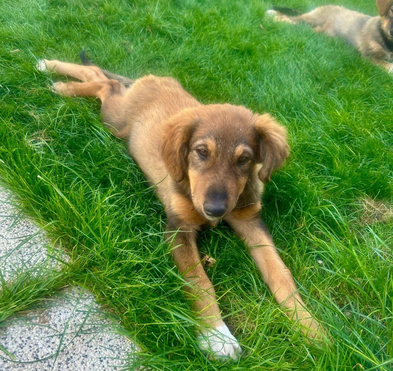 Mara is zo’n jonge hond dat je hart in één klap verovert. Een superknap meisje, met dat eigenwijze, guitige snoetje dat precies laat zien hoe nieuwsgierig ze naar de wereld is. Samen met haar zusje werd ze gevonden op straat in Roemenië. De twee liepen zij aan zij, dapper maar duidelijk zoekend… naar water, naar eten, en misschien vooral naar iemand die hen eindelijk zou zien.