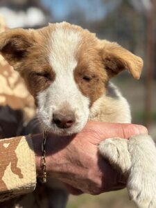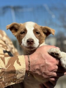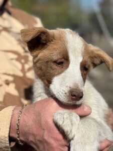 Dit witte meisje met mooie bruine vlekjes is Mia. Samen met haar acht broertjes en zusjes werd ze op een dag achtergelaten, zonder uitleg en zonder reden, simpelweg omdat ze niet meer gewenst werden. Niemand weet precies wat hen is overkomen voor ze in de opvang terechtkwamen, en dat verleden blijft voor nu een raadsel. Wat we wel weten, is dat ze nu veilig zijn, maar dat een drukke kennelomgeving niet de plek is waar zulke jonge, kwetsbare hondjes hun ware potentieel kunnen ontplooien.