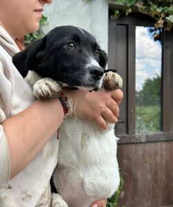 Mirthe is de mama van vier prachtige pups en is gevonden toen zij langs de weg zwierf op zoek naar eten en een veilige plek voor haar pups. Onmiddellijk was duidelijk dat ze onlangs pups had gehad en gelukkig werd het nestje na enige tijd zoeken gevonden. Met z’n allen gingen ze op weg naar het huis van de foster én op weg naar een hopelijk betere toekomst, maar tot zij een enkele reis richting Nederland of België mag maken zit zij bij een foster in Roemenië. Het asiel is overvol en gelukkig zijn er een aantal foster plekken, die broodnodig zijn.