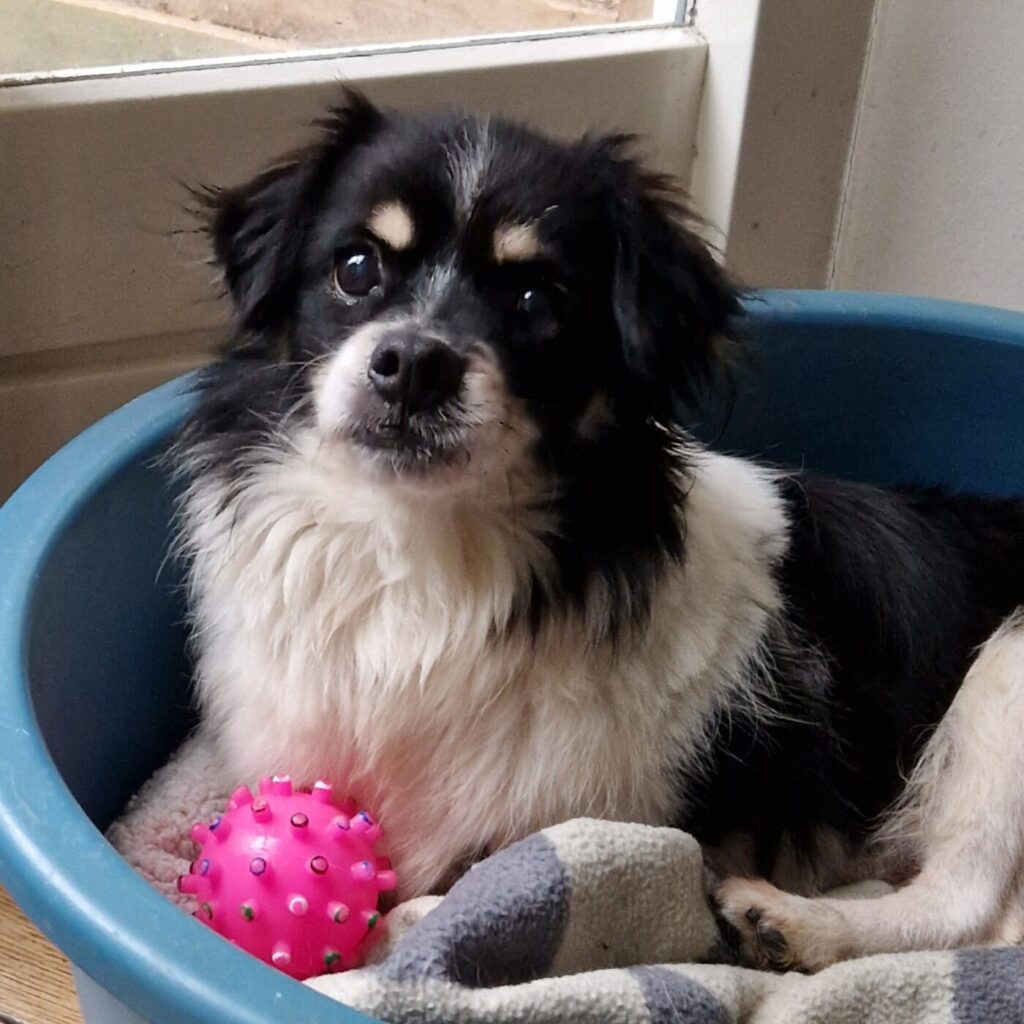 Moldavia is een lief klein meisje, met haar stompe staartje begroet ze de vrijwilligers enthousiast en probeert ze een knuffel te halen.