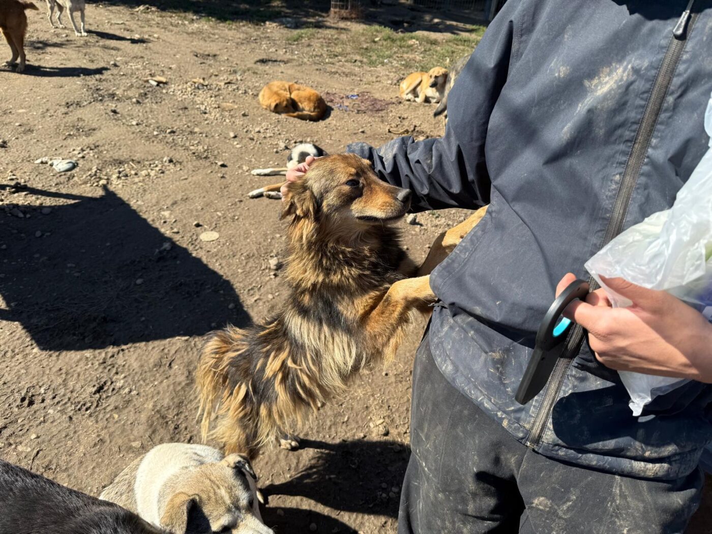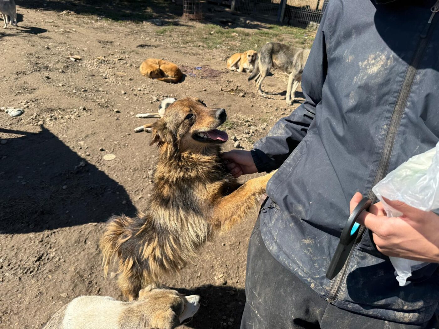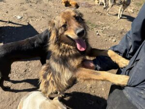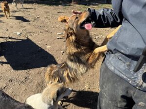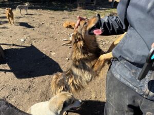 Hij zit al bij onze partnerrescue sinds hij nog maar een paar maanden oud was. Dat betekent dat bijna zijn hele leven zich heeft afgespeeld achter tralies, met korte momenten van vrijheid wanneer de vrijwilligers er zijn. En dat is precies waar het wringt, want Mustang is enorm mensgericht. Als er iemand binnenkomt, zie je hem opleven. Hij loopt mee, blijft in de buurt, zoekt contact. Niet opdringerig, maar met oprechte blijdschap. Voor een hond die zó gericht is op mensen, is het hard om dag in dag uit te moeten wachten tot er eindelijk weer iemand even tijd voor hem heeft.
