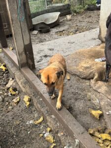 Dit is Nala, een ontzettend lief meisje dat helaas een moeilijke start heeft gehad. Zij werd gevonden langs de weg, op zoek naar eten om te overleven. Gelukkig kwam er op dat moment een vrijwilligster voorbij die haar opmerkte en besloot haar mee te nemen. Zo kreeg Nala de kans om veilig te zijn en te beginnen aan een nieuw hoofdstuk in haar leven.