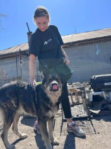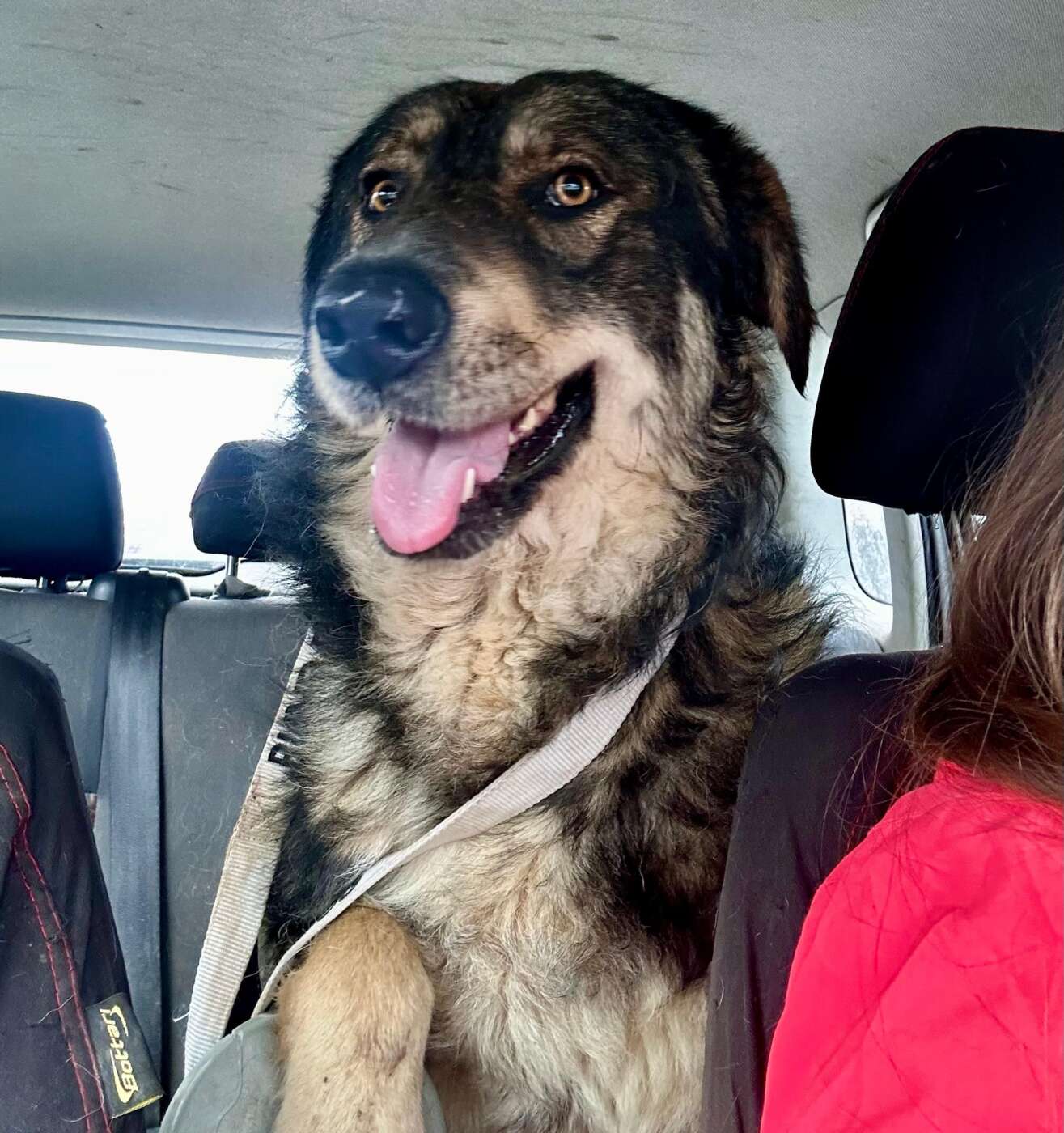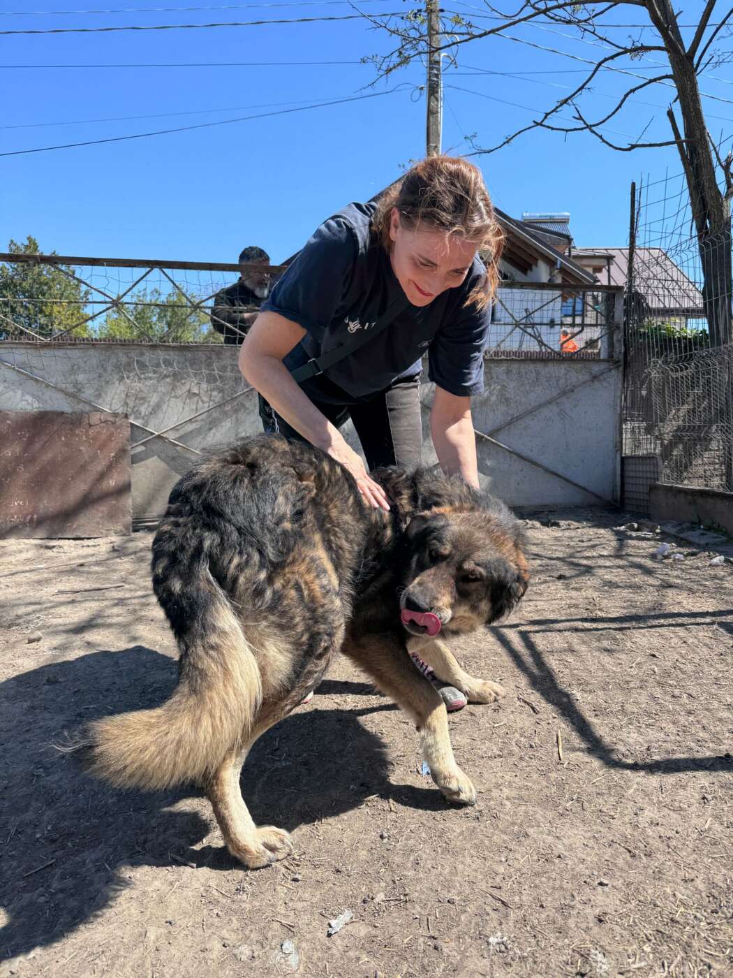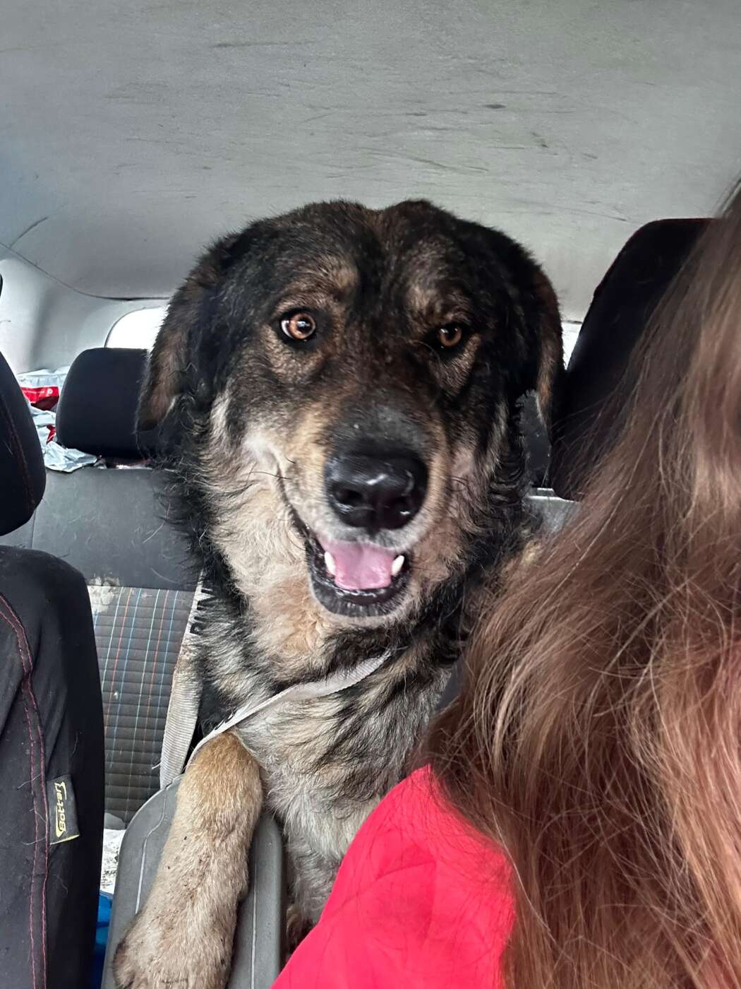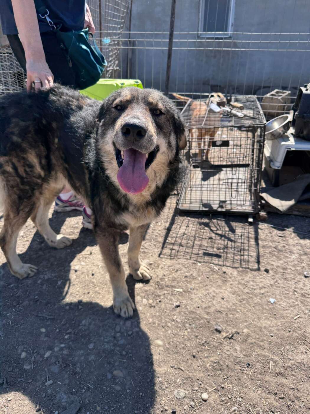 Odin liep rond bij het station, samen met een groep pups die daar ook probeerden te overleven. Wat direct opviel, was niet alleen dat Odin een grote, imposante verschijning is, maar vooral hoe hij zich over de kleintjes ontfermde. Hij speelde met ze, hield zich in hun buurt en leek zich verantwoordelijk voor hen te voelen. Toen er hulp werd ingeschakeld om de pups weg te halen, kon men deze bijzondere grote knul onmogelijk achterlaten. Odin ging mee.
