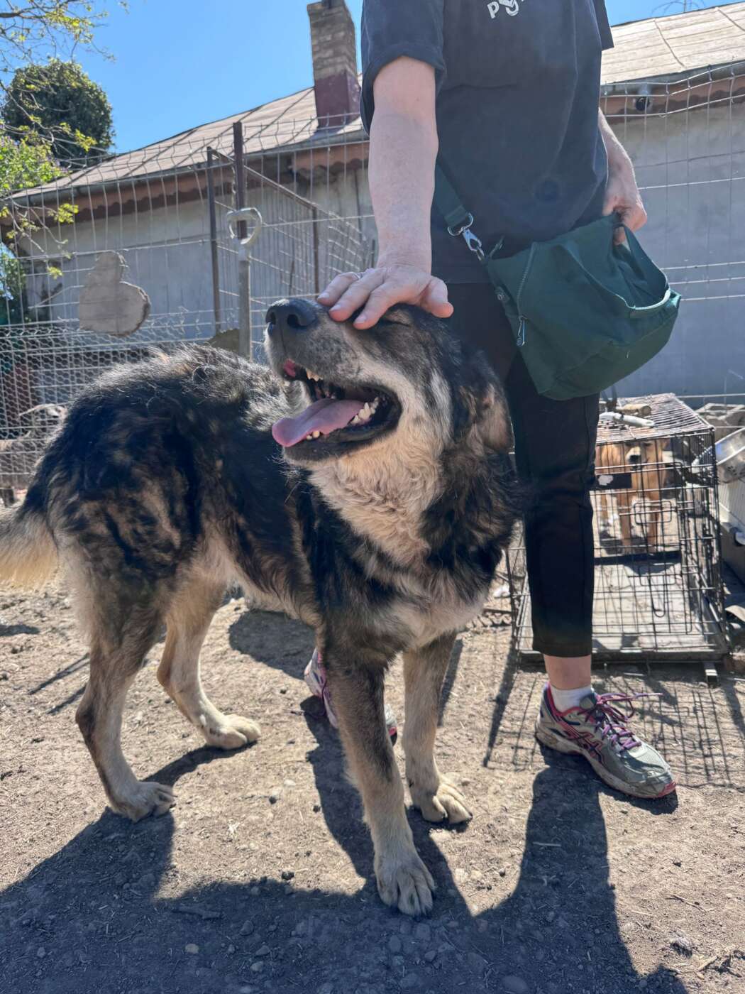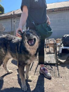 Sindsdien verblijft hij veilig bij onze rescuepartner, waar hij tussen de andere honden leeft en laat zien wat een ontzettend sociale en lieve hond hij is. Met andere honden gaat hij goed om en hij beweegt zich gemakkelijk in de groep. Maar het mooiste zie je als de verzorgers komen. Dan weet Odin haast niet hoe hij aandacht moet vragen. Hij kruipt vrolijk over het terrein naar je toe, drukt zich tegen je aan en geniet zichtbaar van elk moment van contact. Leg je een hand naast hem, dan komt hij er meteen tegenaan liggen. Alsof hij wil zeggen: blijf nog even.