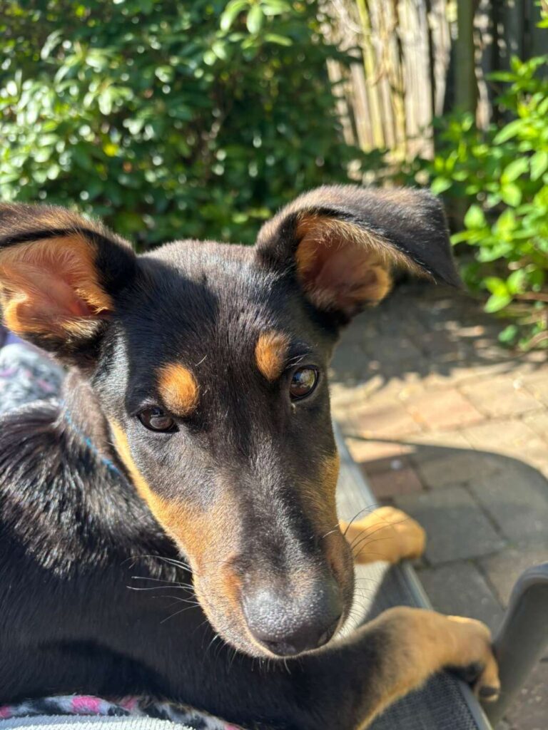 Zoals elke pup moet Olimpia nog veel leren. Denk aan zindelijk worden, alleen thuis blijven en netjes aan de lijn lopen. Maar met geduld, liefde komt dat helemaal goed.