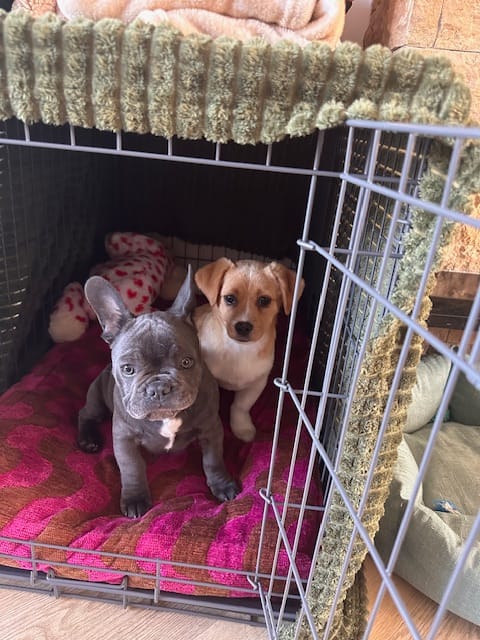 Buiten en in contact met onbekenden wordt haar onzekerheid wat meer zichtbaar. Nieuwe mensen, vooral onbekende kinderen en volwassenen, kunnen haar overprikkelen. In die situaties kan ze blaffen, piepen en zelfs soms uitvallen om afstand te creëren. Dit gedrag komt voort uit spanning en angst… het is geen agressie. Bezoek aan huis is daarom lastig voor haar en vraagt om duidelijke begeleiding en rustmomenten. Gezien het huidige gezin een druk sociaal bestaan heeft met veel bezoek geeft dat dan ook problemen. In de bench voelt ze zich overigens wel veilig en daar kan ze zich dan veilig terugtrekken.