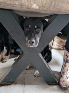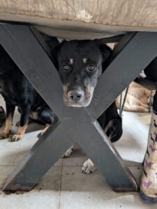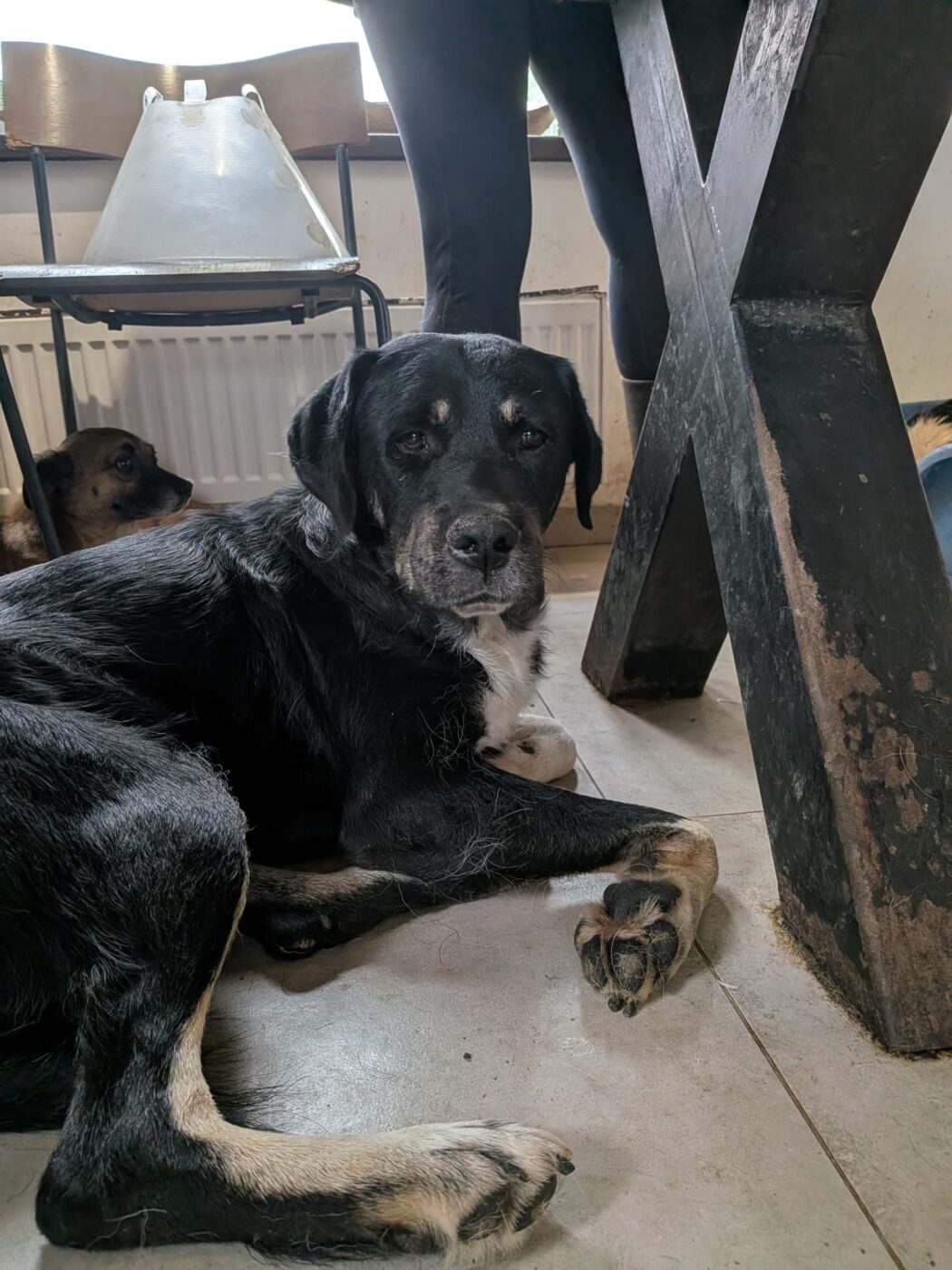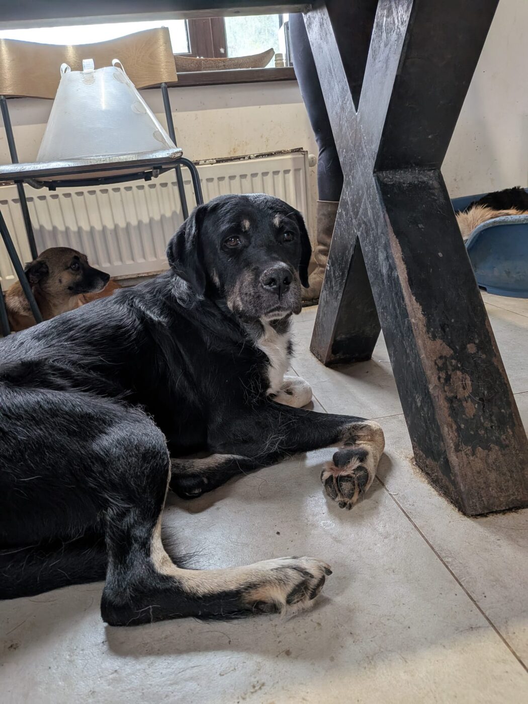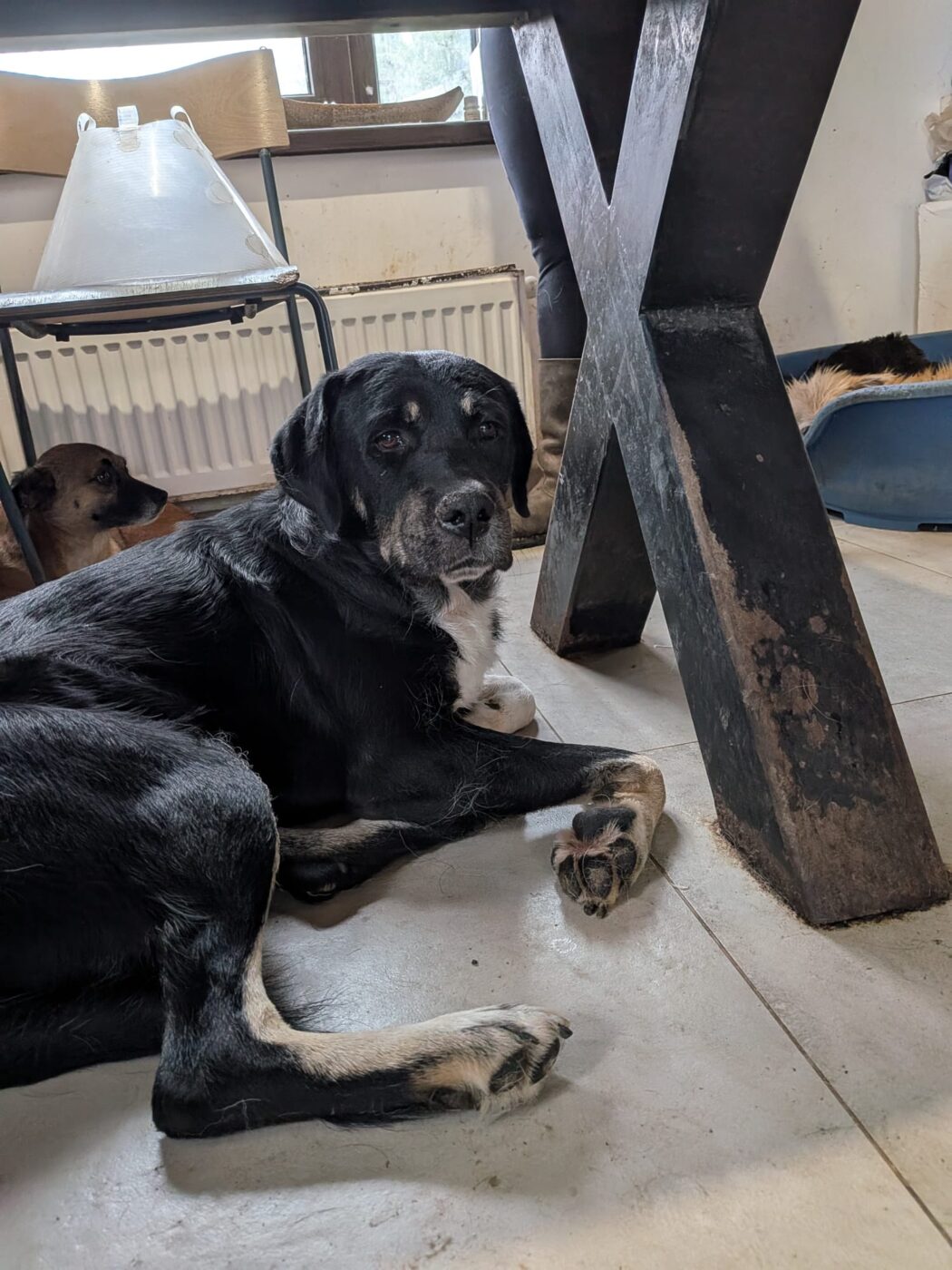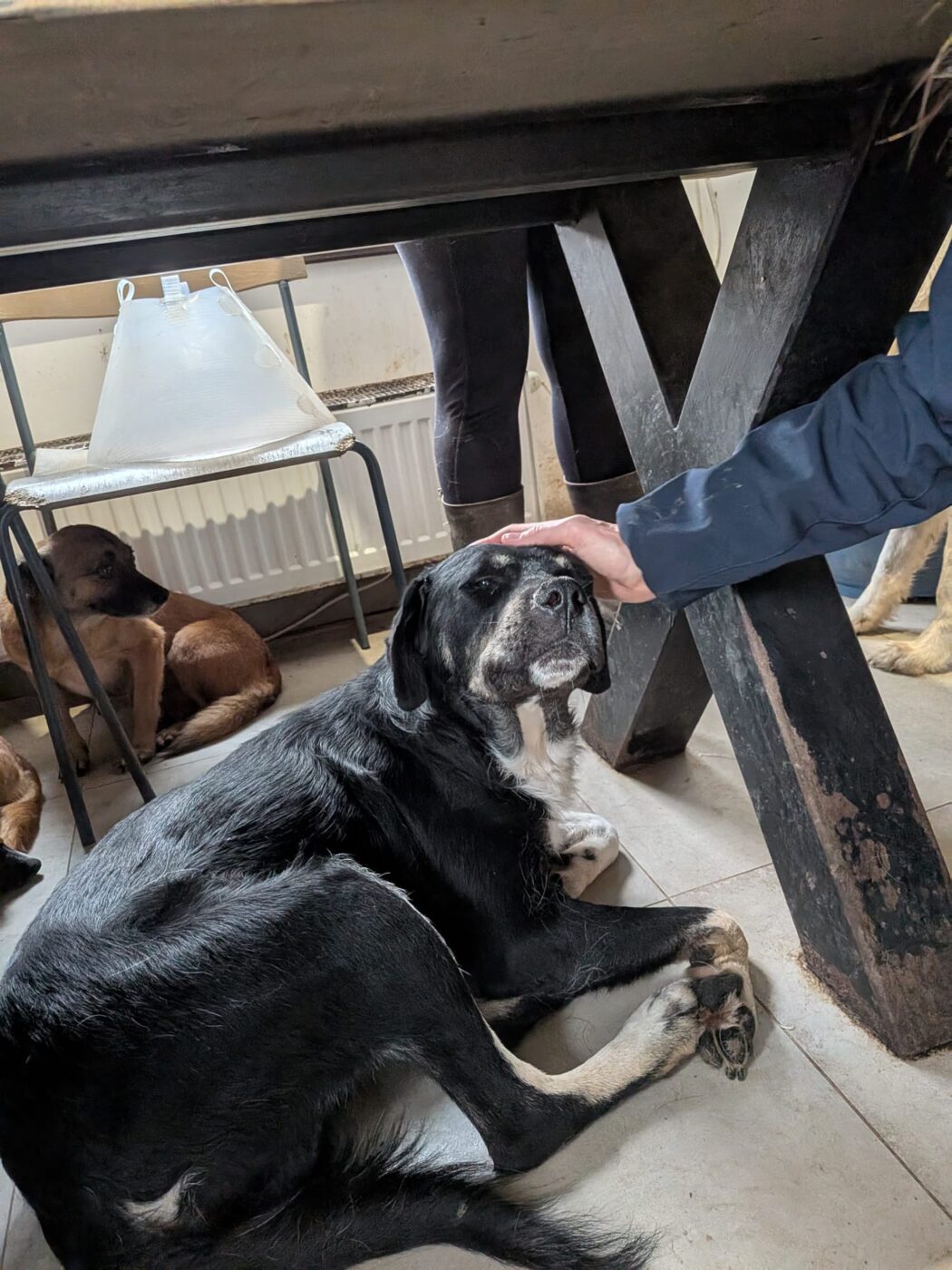 Afgelopen winter werd One verkouden en raakte hij wat ziek. Om aan te sterken, werd hij tijdelijk in de vrijwilligerswoning geplaatst. Inmiddels is hij allang weer beter, maar hij zit er nog steeds — en dat is niet zonder reden. One geniet zó intens van het huiselijke bestaan dat de vrijwilligers het simpelweg niet over hun hart kunnen verkrijgen om hem terug in de kennel te zetten.
