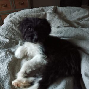 Panda is een teefje, geboren rond 8 juni 2025, en ze zal naar verwachting uitgroeien tot ongeveer 38 cm hoog.