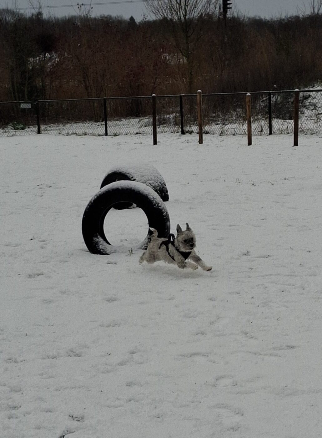 Hij vindt het heerlijk om lekker los rond te crossen in een omheinde honden wei en geniet daar zichtbaar van. Lekker zijn energie kwijt raken om daarna op de bank of in zijn mandje een lekker ontspannen tukkie te doen. Het allerliefst doet hij dit dicht bij zijn fosterbaasje op de bank. Deze kleine man kan heerlijk met zijn soortgenootjes spelen maar ook alleen vermaakt hij zich prima. Hij heeft niet perse een hondenmaatje nodig bij zijn nieuwe baasje. Hij maakt niks kapot in huis en huis is zindelijk. Ook luisteren doet hij redelijk goed.