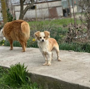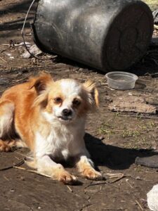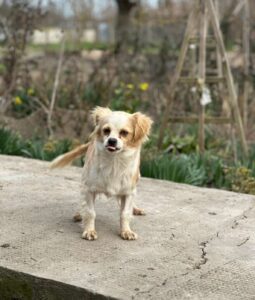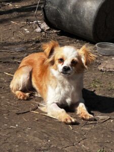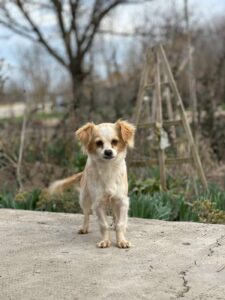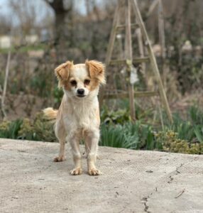 Peki is een mix teefje met een geschatte geboortedatum van 12 februari 2024 en ze is ongeveer 25-28 cm hoog. (03/26)