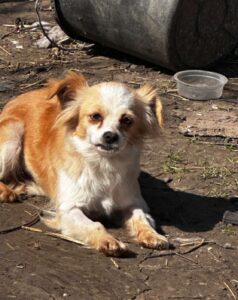 Toen ze door onze partnerorganisatie werd opgemerkt, was ze nog wat terughoudend. Ze bewoog zich voorzichtig, alsof ze eerst wilde begrijpen of het wel veilig was om gezien te worden. Maar wie goed keek, zag het al: achter die verlegen blik schuilde een ontzettend lief en zachtaardig hondje dat niets liever wil dan vertrouwen.