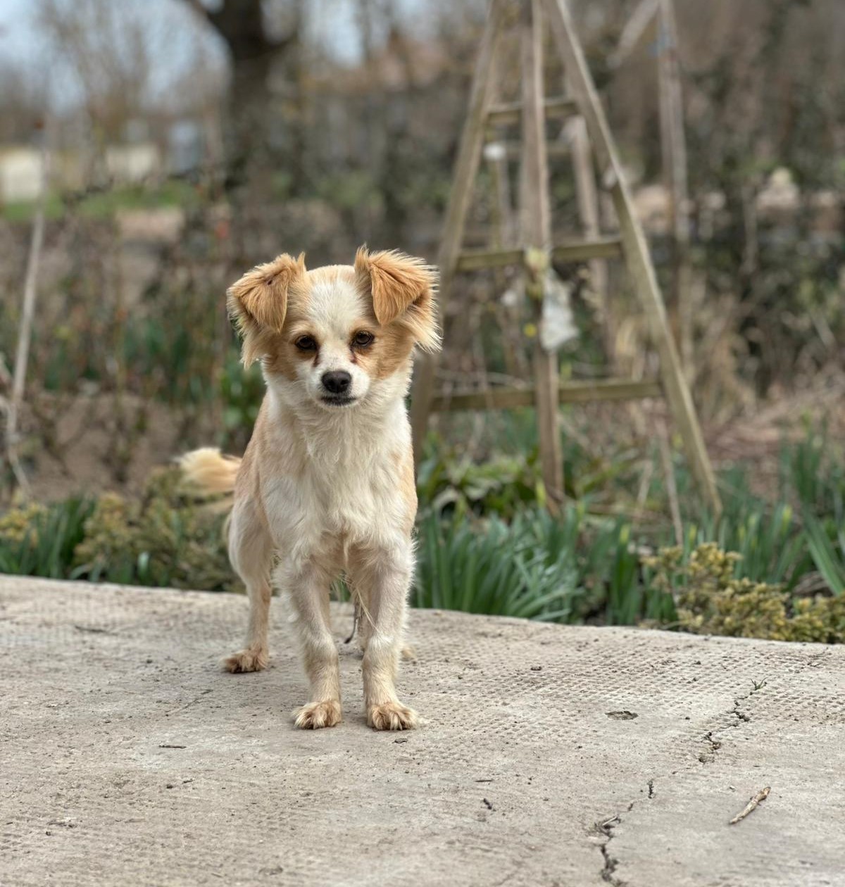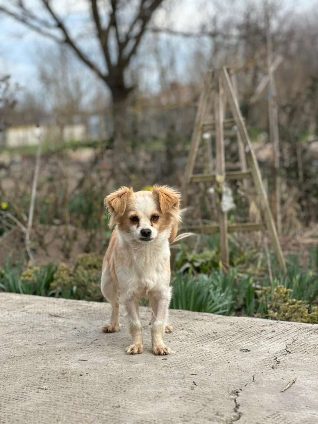 Peki is een mix teefje met een geschatte geboortedatum van 12 februari 2024 en ze is ongeveer 25-28 cm hoog. (03/26)