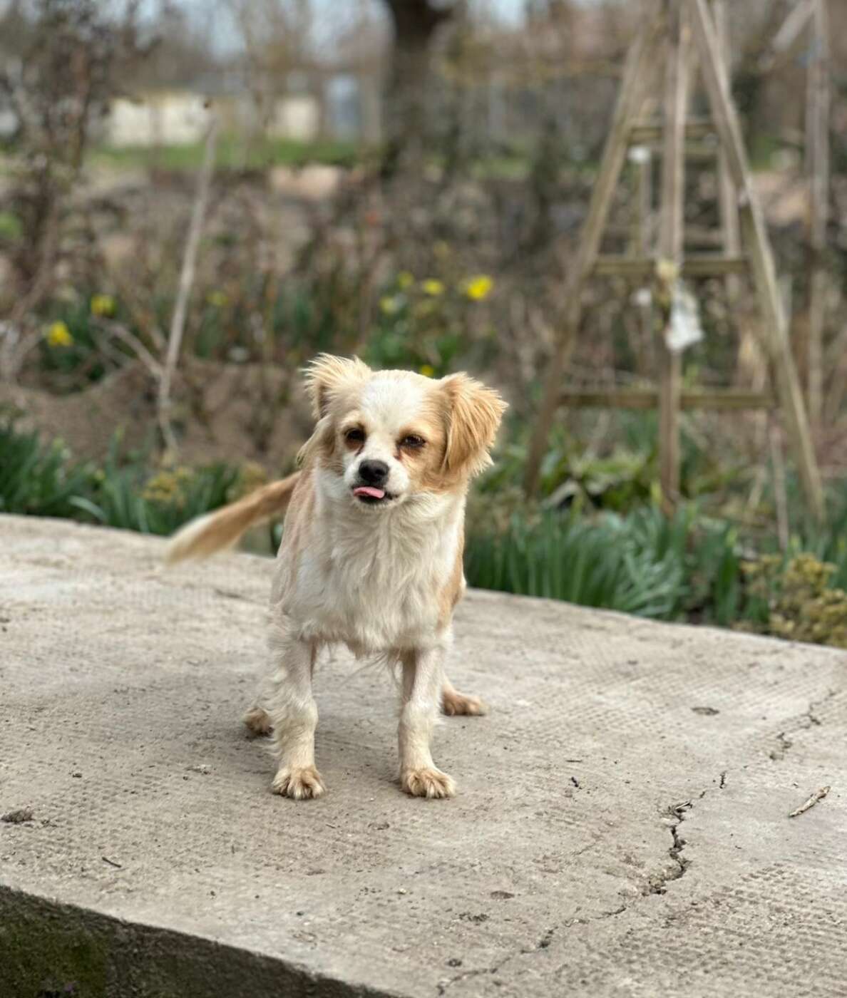 Toen ze door onze partnerorganisatie werd opgemerkt, was ze nog wat terughoudend. Ze bewoog zich voorzichtig, alsof ze eerst wilde begrijpen of het wel veilig was om gezien te worden. Maar wie goed keek, zag het al: achter die verlegen blik schuilde een ontzettend lief en zachtaardig hondje dat niets liever wil dan vertrouwen.