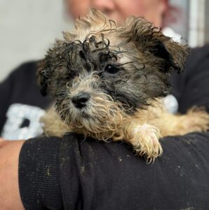Penny is een mix teefje met een geschatte geboortedatum van 24 november 2025 en we verwachten dat ze ongeveer 30-35 cm hoog wordt. (02-26)