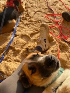 Sinds enkele weken slaapt Pixel in het vrijwilligershuis, en dat gaat fantastisch! Hij is volledig zindelijk, rustig in huis en heeft geen moeite met geluiden of meerdere mensen en honden om zich heen. ’s Avonds speelt hij graag met de andere honden of met zijn speeltjes, en komt hij af en toe even langs voor een knuffel. Voor het slapengaan vraagt hij om zijn welverdiende ‘goedenacht-knuffel’ en daarna slaapt hij rustig door in zijn mandje.