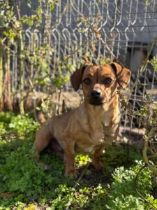 Dit vrolijke dametje is Puck, een klein teckelmix-meisje met een groot hart. Puck zwierf ooit rond op de straten van Roemenië, onopgemerkt door iedereen… tot ze gelukkig werd opgemerkt door onze rescuepartner en een plekje kreeg in de opvang. Maar het asielleven is zwaar voor kleine hondjes zoals zij, Puck wil het liefst een huishondje zijn. Ze is niet alleen ontzettend knap en grappig, maar ook sociaal naar haar soortgenootjes én de vrijwilligers die haar elke dag verzorgen. Zodra zij binnenkomen komt ze graag even een aai halen. Ze droomt van een baasje met wie ze samen kan wandelen in het park of het bos, spelen met een balletje en natuurlijk lekker kan knuffelen op de bank. Wie geeft dit lieve, dappere meisje de kans om eindelijk te genieten van het leven dat ze verdient?