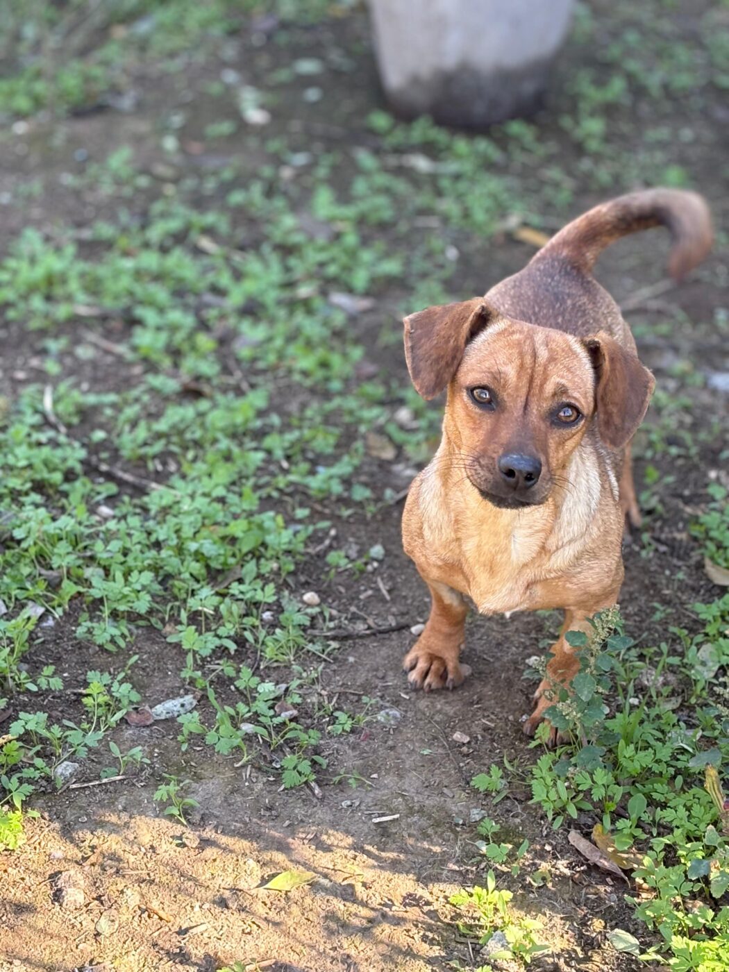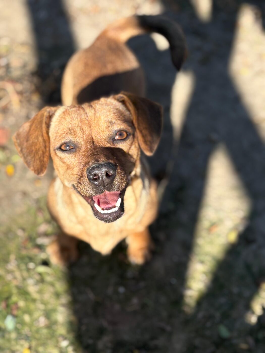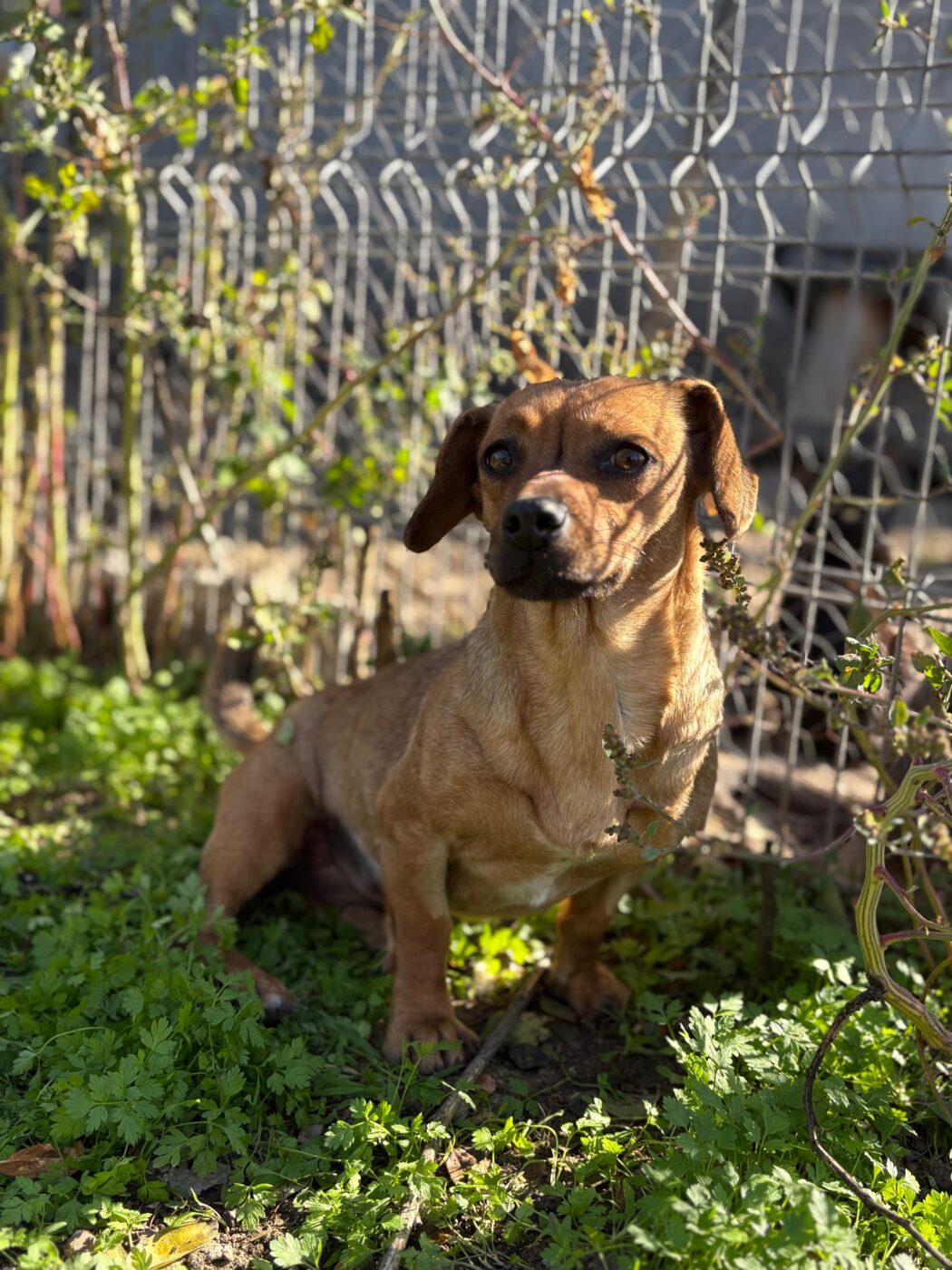 Dit vrolijke dametje is Puck, een klein teckelmix-meisje met een groot hart. Puck zwierf ooit rond op de straten van Roemenië, onopgemerkt door iedereen… tot ze gelukkig werd opgemerkt door onze rescuepartner en een plekje kreeg in de opvang. Maar het asielleven is zwaar voor kleine hondjes zoals zij, Puck wil het liefst een huishondje zijn. Ze is niet alleen ontzettend knap en grappig, maar ook sociaal naar haar soortgenootjes én de vrijwilligers die haar elke dag verzorgen. Zodra zij binnenkomen komt ze graag even een aai halen. Ze droomt van een baasje met wie ze samen kan wandelen in het park of het bos, spelen met een balletje en natuurlijk lekker kan knuffelen op de bank. Wie geeft dit lieve, dappere meisje de kans om eindelijk te genieten van het leven dat ze verdient?