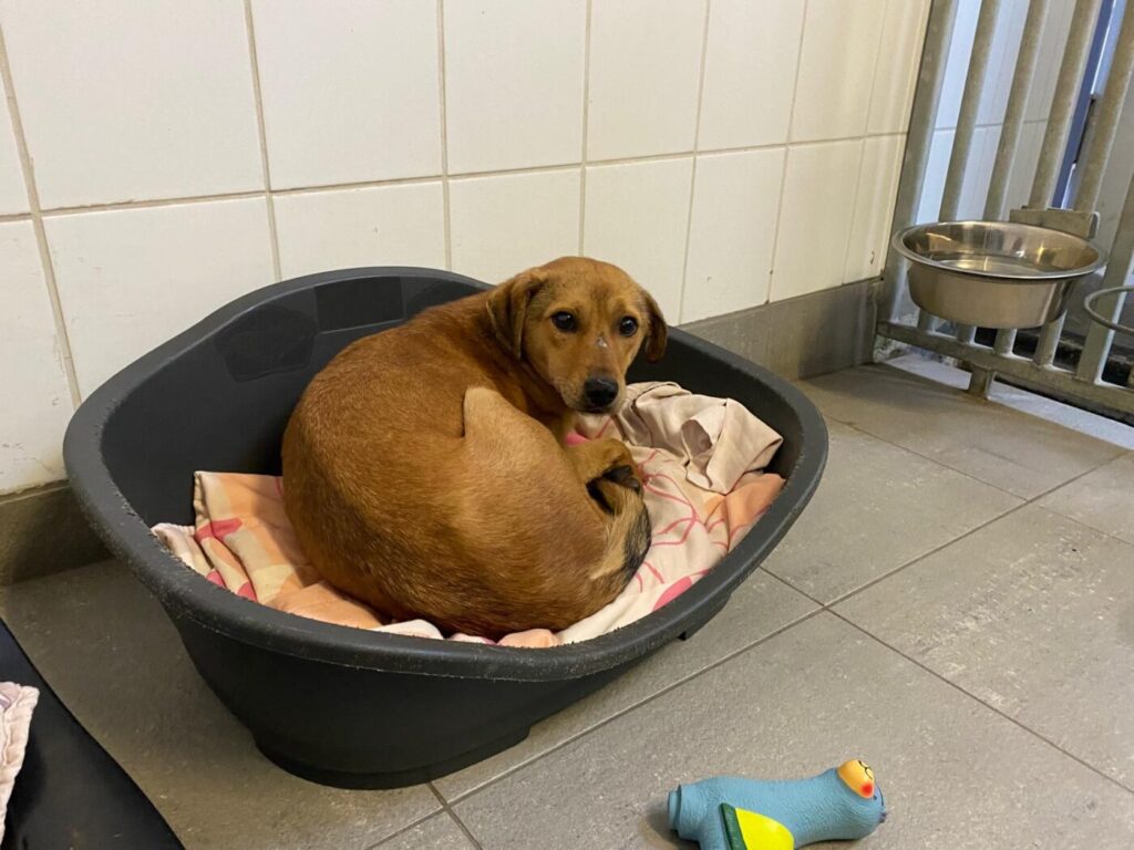 Rex is een mix reu met een geschatte geboortedatum van 8 februari 2024 en hij heeft een verwachte eindhoogte van 45-50 cm.(05/24)