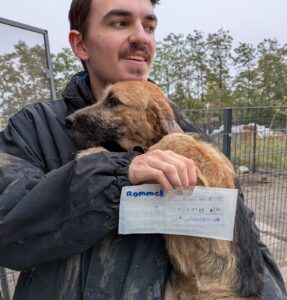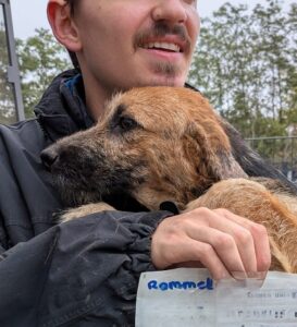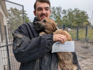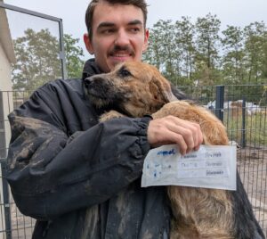 Rommel, zo genoemd om zijn ruwe vacht, werd in het voorjaar gevonden terwijl een aantal van onze vrijwilligers onderweg waren naar één van de opvang locaties in Roemenië. Samen met zijn zusjes lag hij kansloos langs de weg. Uiteraard namen de vrijwilligers de pups mee op schoot veilig naar de opvang van Mirela. Inmiddels is Rommel volledig gevaccineerd en oud genoeg om zijn reis naar Nederland te maken.