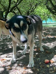 Lieve Rosita, mama van Pippa, Alice en Celia! Bij het ophalen van een verlaten nest met pups werd Rosita toevallig gezien en was het overduidelijk dat ook zij een nest met pups had, maar waar? Na een flinke zoektocht werd het nest gevonden, bovenop een 4 meter hoge afvalbult. Natuurlijk zijn ze allemaal meegenomen en inmiddels zijn de pups zo groot dat ze zonder hun moeder kunnen dus is het nu tijd om voor Rosita een liefdevolle mand te zoeken, want dat verdient dit dametje. Rosita is lief, vriendelijk en sociaal, ze heeft een geschatte geboortedatum van 15 september 2015. Ze is ongeveer 55 cm hoog.(09/22)