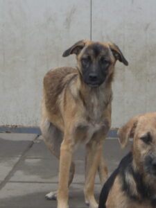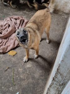 Bescheiden zachtaardige Roxy werd in het voorjaar gevonden terwijl een aantal van onze vrijwilligers onderweg waren naar één van de opvang locaties in Roemenië. haar moeder lag in een achtertuin aan de ketting maar de eigenaar wilde geen zorg dragen voor de puppy’s dus dumpte hij hen langs de weg. Volledig overgelaten aan hun lot lagen ze daar. Gelukkig waren de vrijwilligers daar en namen zij de pups mee op schoot. Veilig naar de opvang van Mirela. Inmiddels is Roxy volledig gevaccineerd en oud genoeg om haar reis naar Nederland te maken.