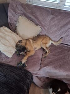 Mocht u belangstelling hebben voor Roxy dan praten we u met alle liefde bij hoe je het in de toekomst alleen thuis laten, kunt trainen. Vooral in het begin zorgen dat ze niet alleen is en hele kleine stapjes maken. Wij zijn ervan overtuigd dat dat goed gaat komen. Ze is zo lief, zachtaardig en aanhankelijk.