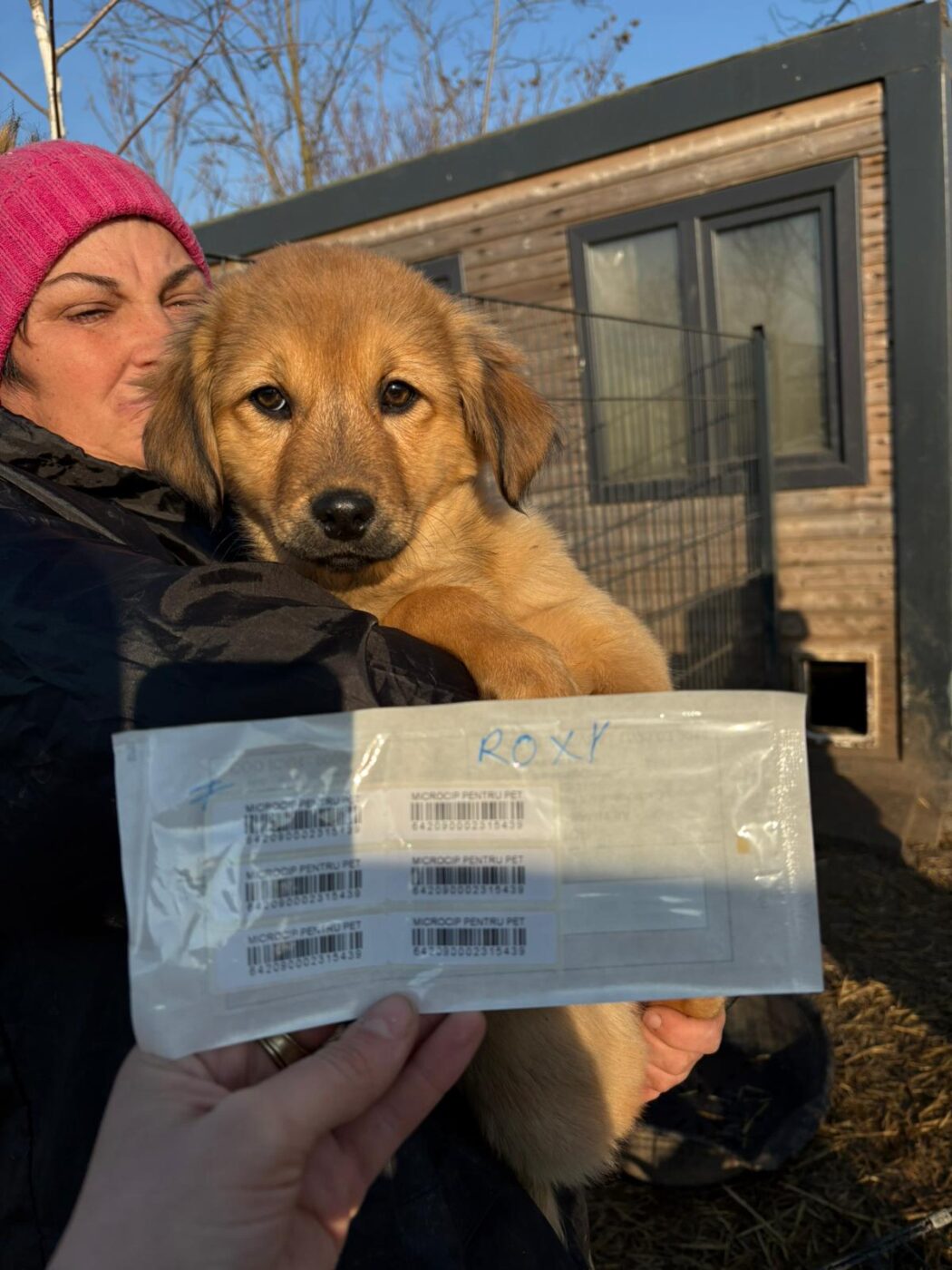 Roxy is een prachtig meisje met een bijzonder begin van haar leven. Ze werd gevonden door een jongetje dat haar meenam naar zijn oma, in de hoop dat Roxy bij haar moederhond (met pups) mocht drinken. Helaas accepteerde de moederhond haar niet.