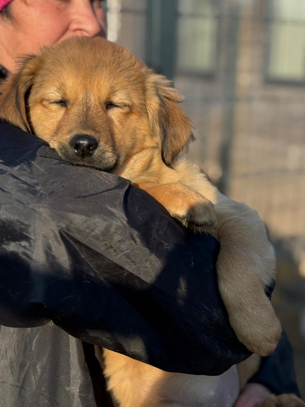 Roxy is een mix teefje met een geschatte geboortedatum van 20 september 2025 en we verwachten dat ze ongeveer 38-40 cm hoog wordt. (12/25)