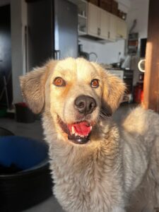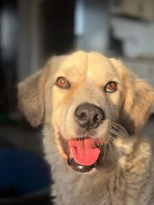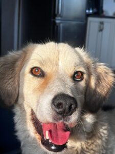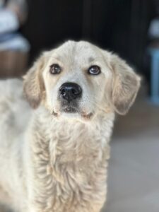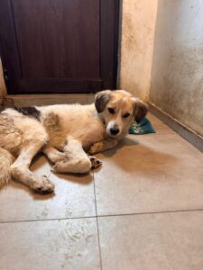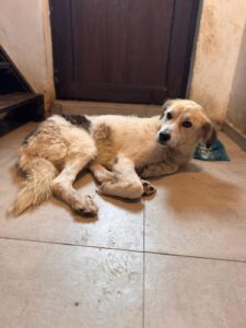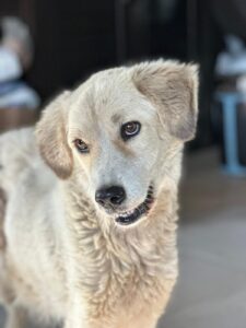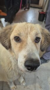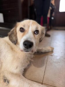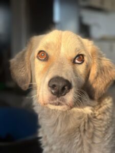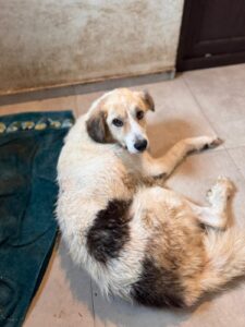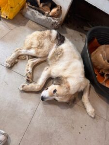 Satelita is een mix teefje met een geschatte geboortedatum van 3 juli 2022 en ze is ongeveer 55 cm hoog. (10/25)