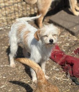 Sisi is een mix teefje met een geschatte geboortedatum van 12 februari 2025 en ze is ongeveer 30-35 cm hoog. (03/26)